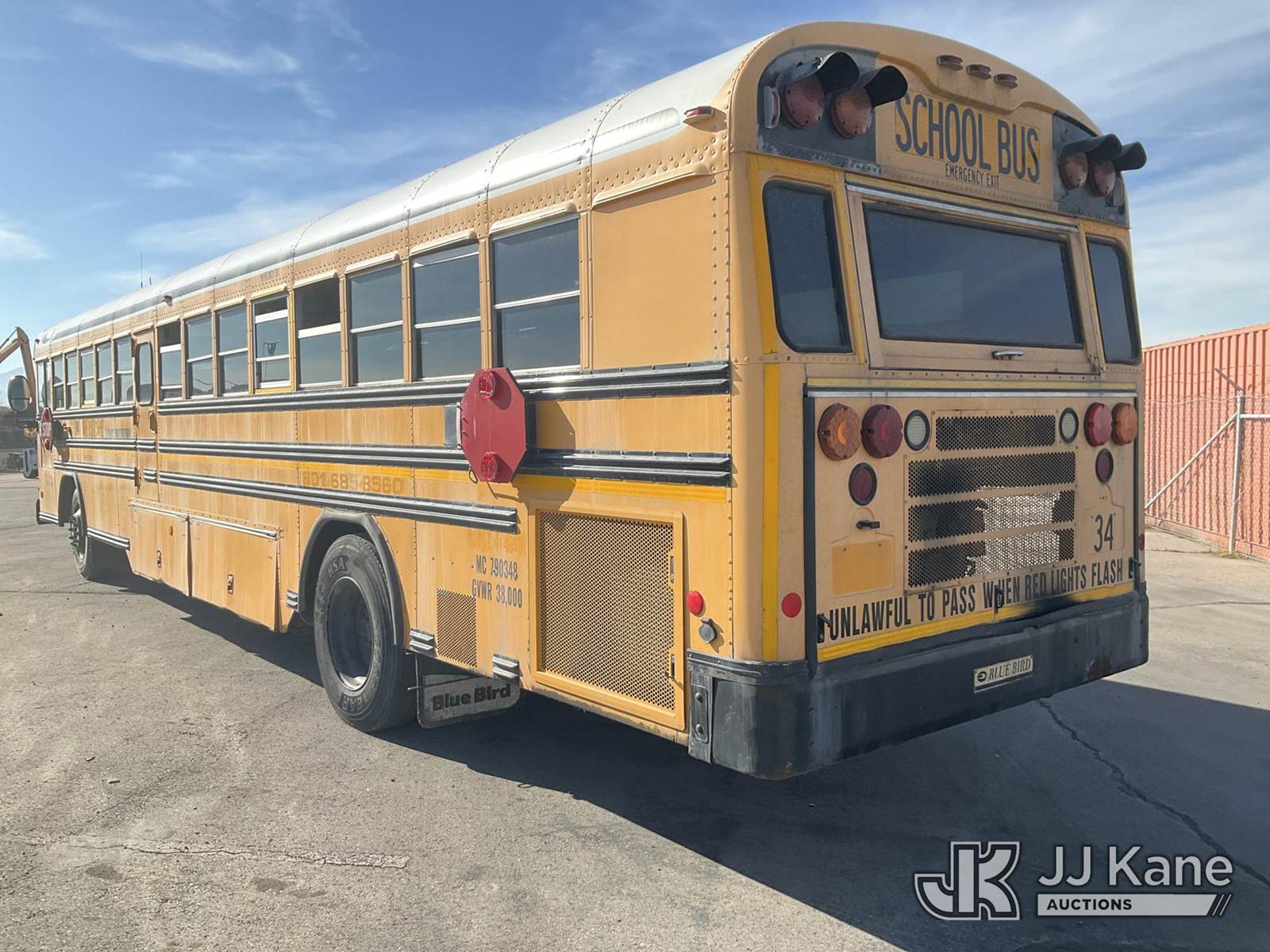 2007 Blue Bird All American School Bus, 7.2L diesel, Auto, (277,335 miles) (Runs) (Engine & Transmission Issues, Barely Moves, Wont Stay Running) (Reads 12,116 hours) This is a Titled Item NOTE: This unit is being sold AS IS/WHERE IS via Timed Auction and is located in Salt Lake City, UT. Inspection & preview days for this unit are the 2 business days prior to the first day of items closing for this auction, item is located at 2353 N Redwood Rd Salt Lake City, UT 84116 and hours of operations are 8a-4p. Titles executed exactly as bidder registered. Ensure your name and/or business name and address in JJ Kane and/or ProxiBid is correct before bidding. For pre-sale questions, please contact Office Staff @ (801) 519-0123. (Buyer is responsible for removal. Assistance by consignor or JJ Kane Auctions is not assured.)