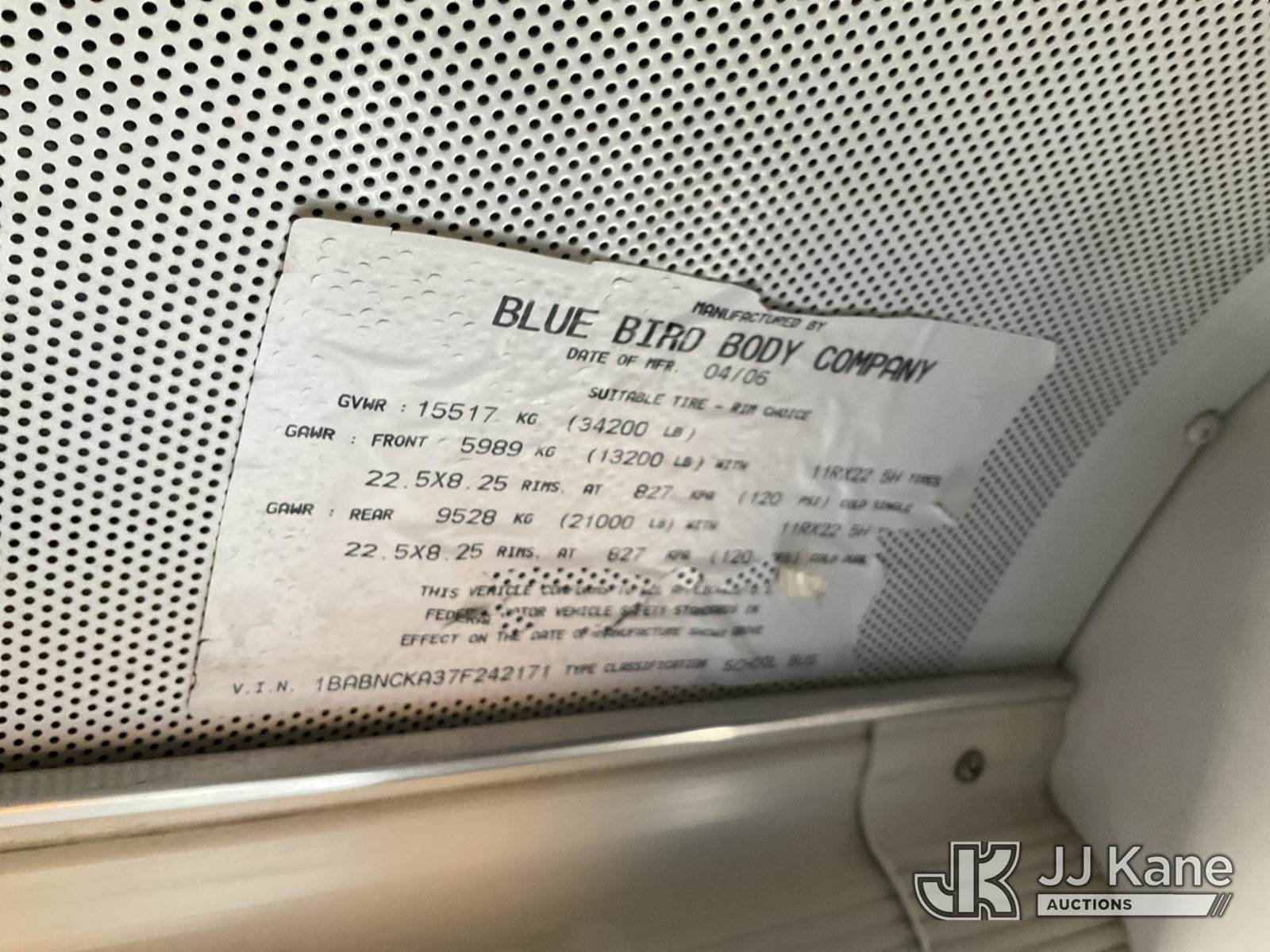 2007 Blue Bird All American/All Canadian School Bus, 7.2L diesel, Auto, True Mileage Unknown (Runs & Moves) (Jump To Start) (Seller States: Broken Rear Leaf Spring) This is a Titled Item NOTE: This unit is being sold AS IS/WHERE IS via Timed Auction and is located in Elko, NV. Titles executed exactly as bidder registered. Ensure your name and/or business name and address in JJ Kane and/or ProxiBid is correct before bidding. For pre-sale questions, please contact Office Staff @ (801) 519-0123 and provide sale date and lot number. Sparks Dealer License Number DLR000052908 / OHV000052909. (Buyer is responsible for removal. Assistance by consignor or JJ Kane Auctions is not assured.)