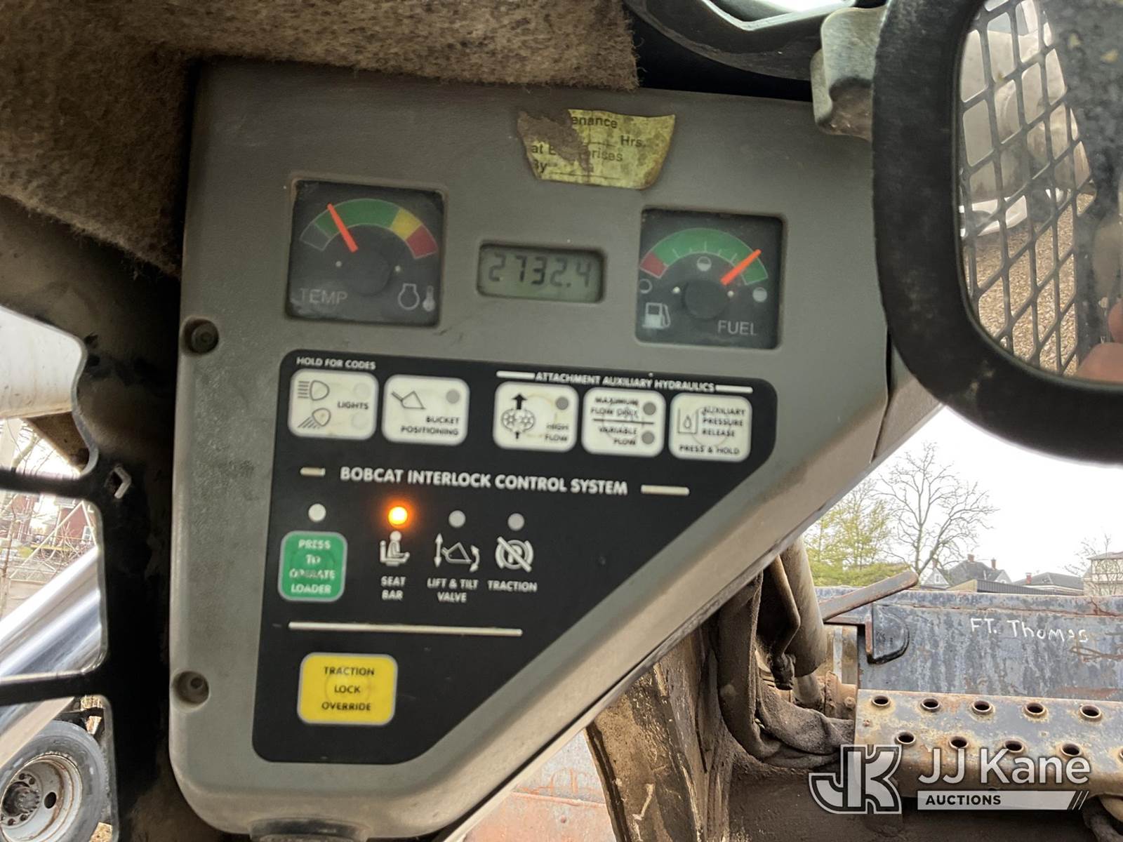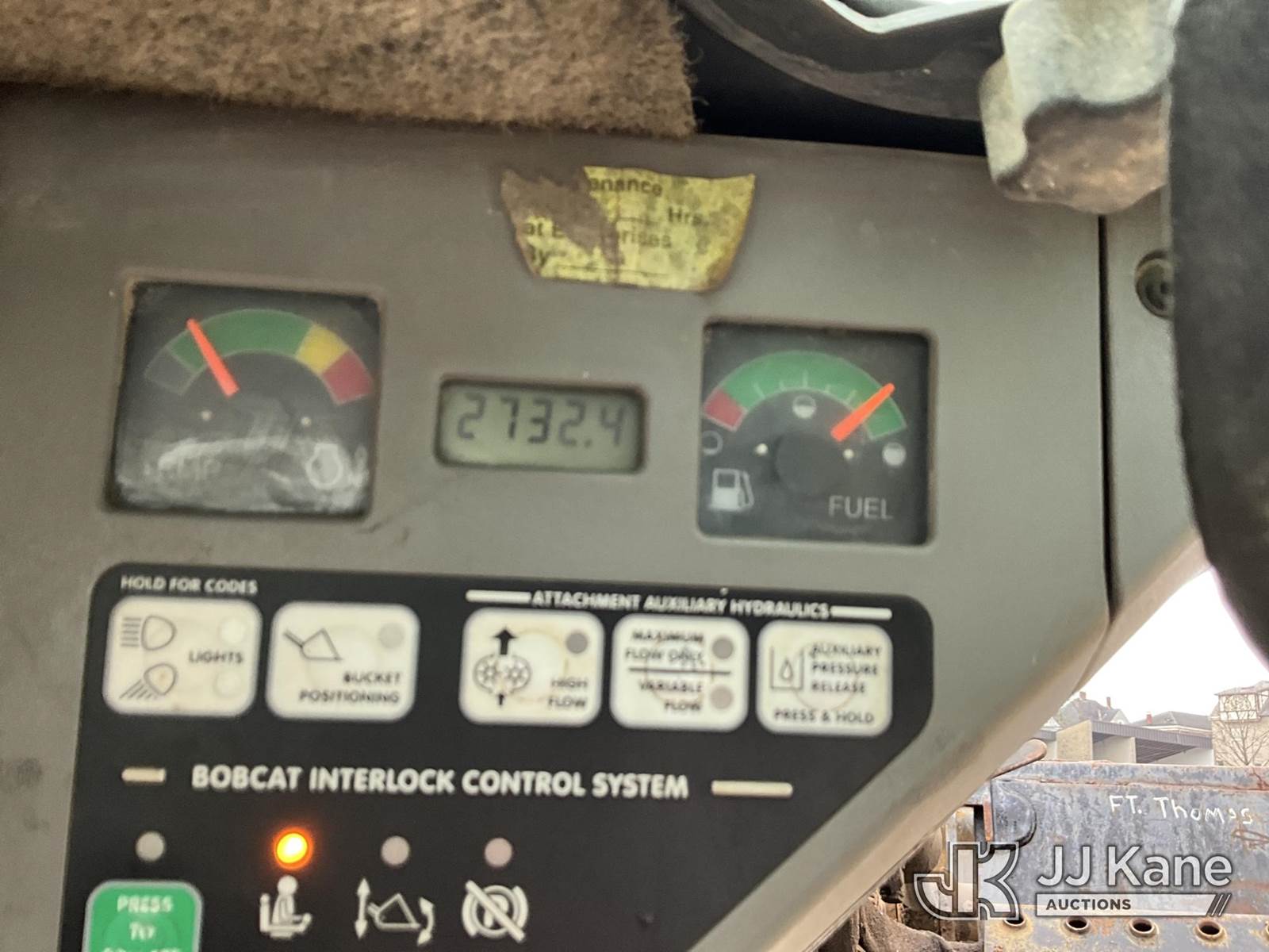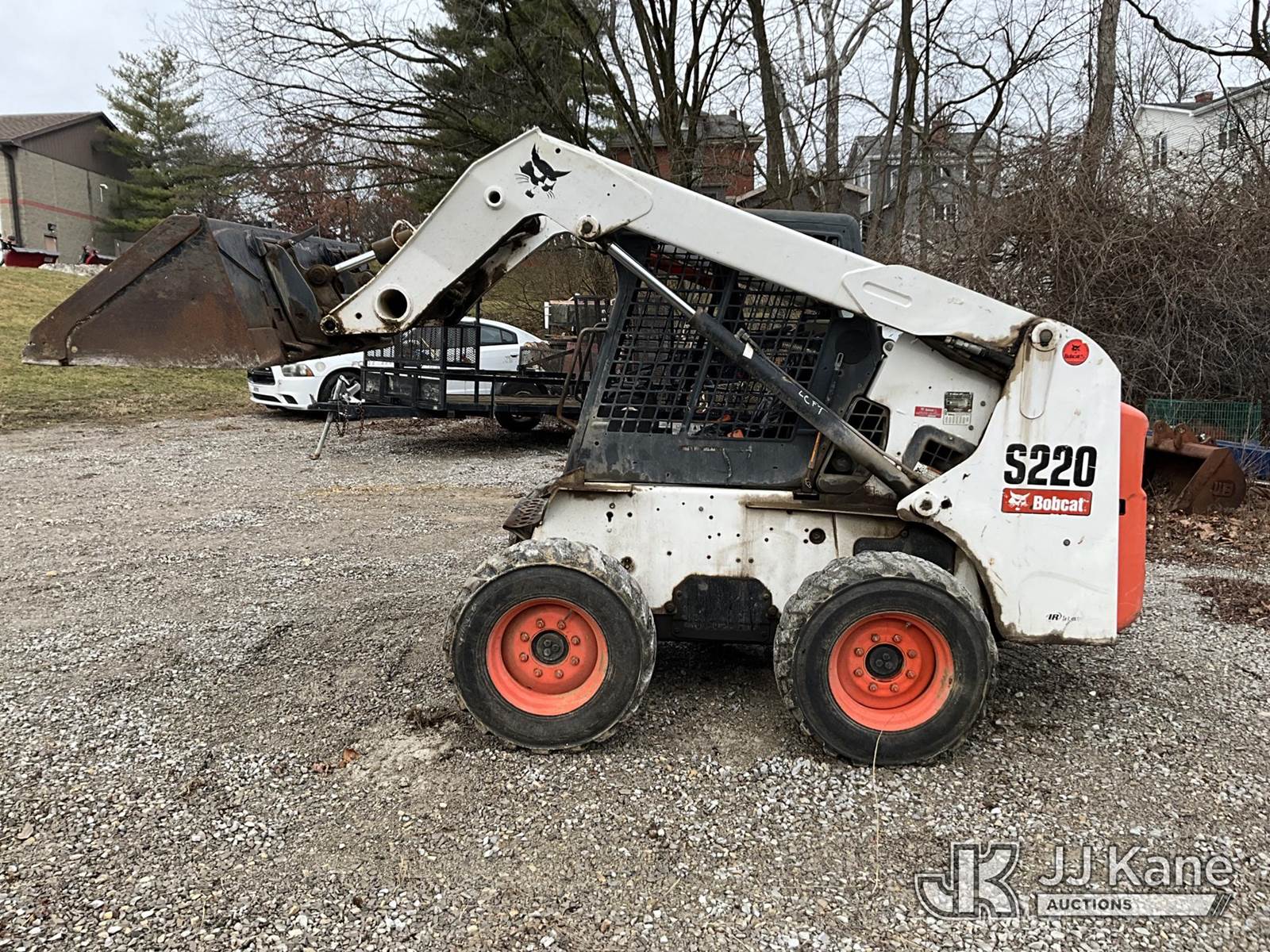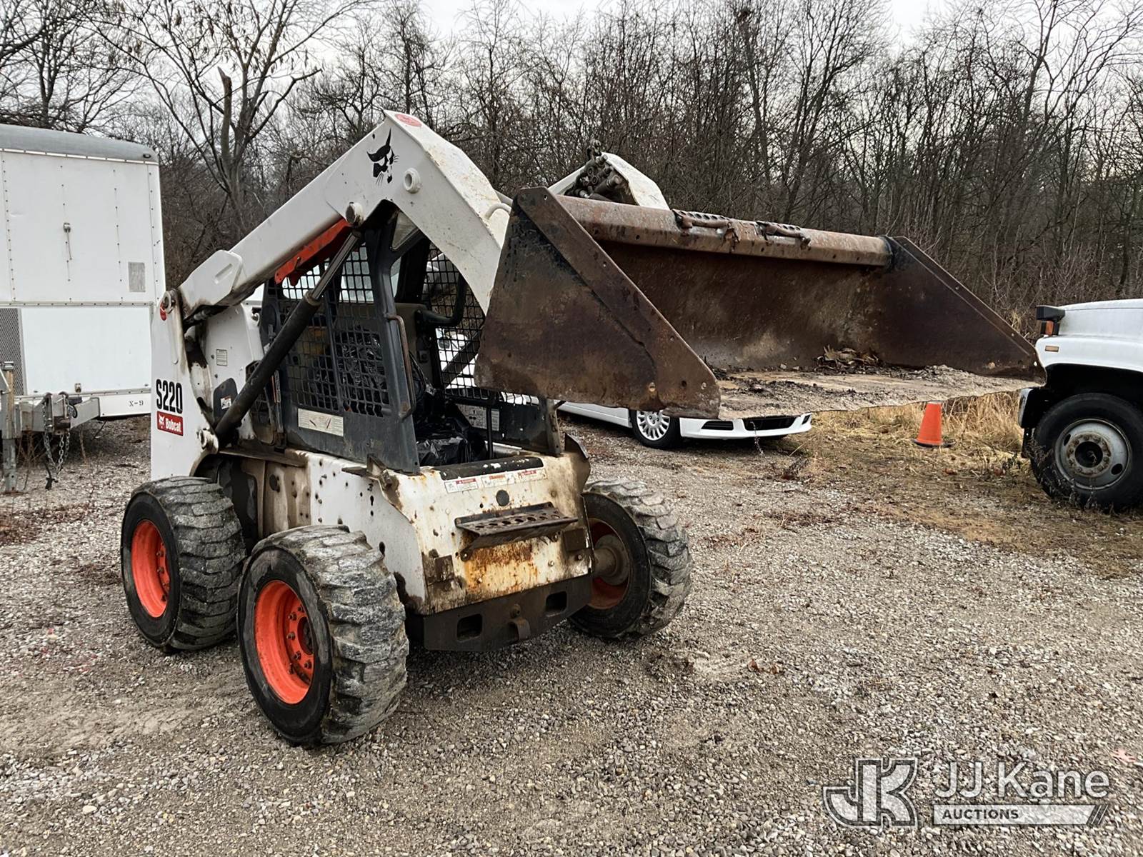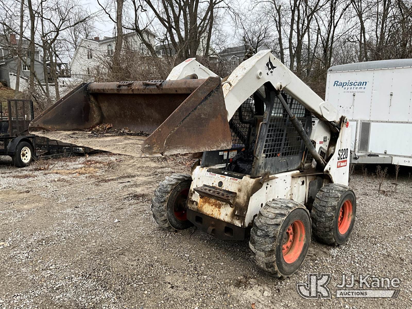 2007 Bobcat S220 Rubber Tired Skid Steer Loader, s/n 530714331, Bobcat diesel, Hydrostatic, with 2 spd. hyd. flow, aux. hydraulics & 74 in GP bucket, (Runs & Operates) (Seller States: Hyd. Leak) (Reads 2,732 hours) NOTE: This unit is being sold AS IS/WHERE IS via Timed Auction and is located in Fort Thomas, KY. For more information & removal arrangements please contact Spencer Owen @ 502-232-2541. Load Out will be by appointment only M-F; must call 24 HRS. in advance. Buyer/Hauler must present copy of paid invoice upon arrival. Purchaser acknowledges ALL lots must be removed within 5 business days of Auction, or a storage fee may be incurred. This item is used and may contain defects that are not immediately detectable. Text description and photos given are meant to be used as a guide only. The conditions are provided by the consignor; you are responsible for inspecting item before bidding. All information provided is believed to be correct but no warranty as such is either intended or implied. All items are sold AS IS - WHERE IS AND WITH ALL FAULTS AND DEFECTS THEREIN. Auctioneer Michael Whitebread / License # 256617 (Buyer is responsible for removal. Assistance by consignor or JJ Kane Auctions is not assured.)
