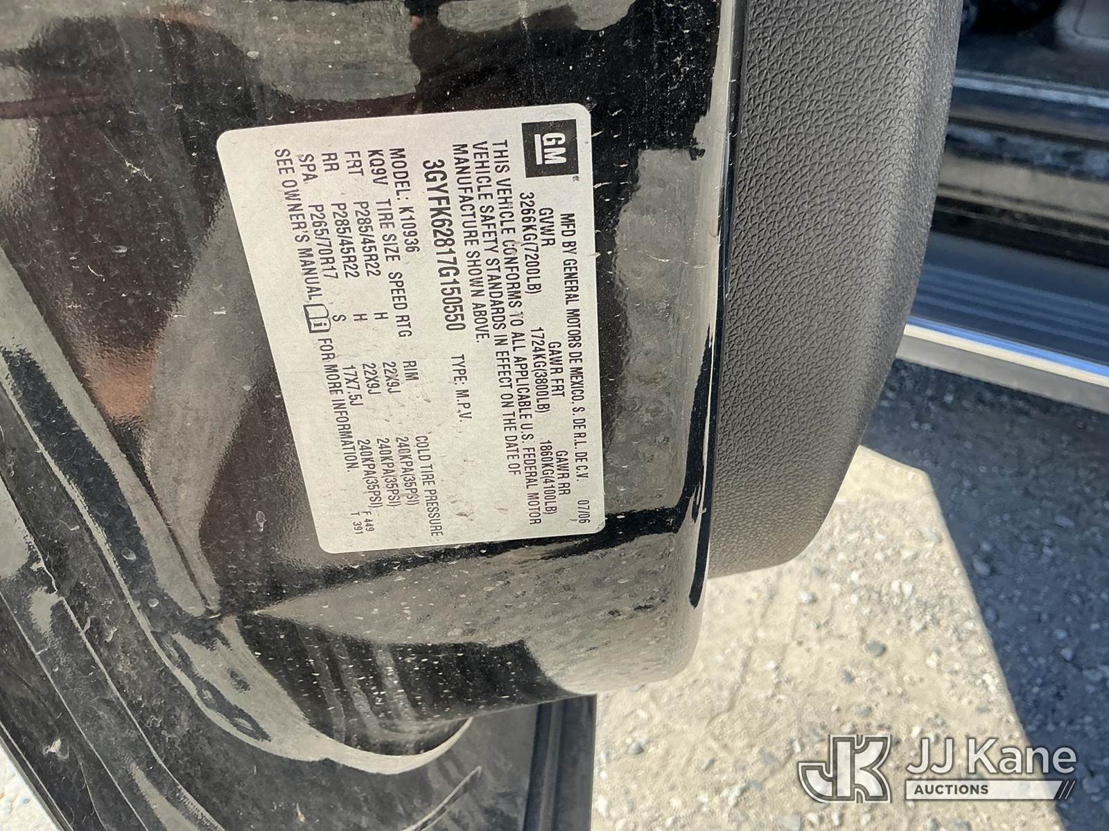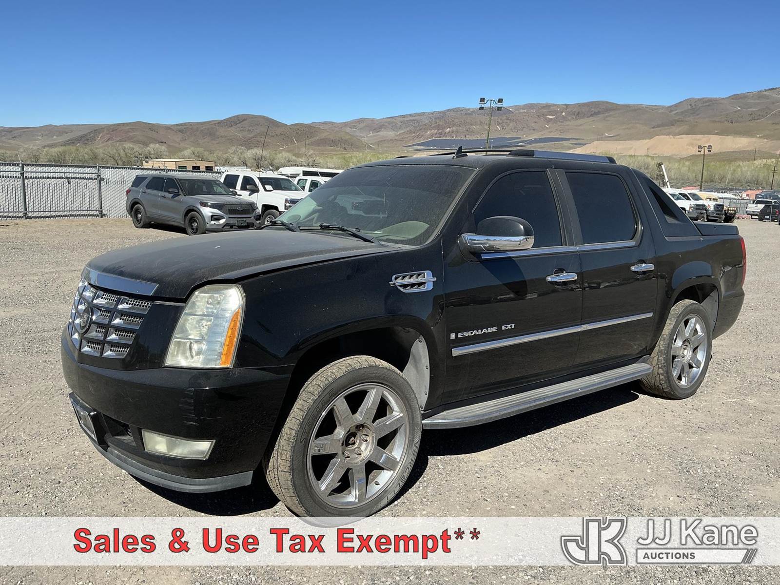 2007 Cadillac Escalade EXT 4-Door Sport Utility Vehicle Pickup Truck, 8-cyl gas, 4WD, 6-Speed Automatic, A/C, (177,908 miles) (Not Running, Condition Unknown, Cranks, Cracked Windshield, Broken Passenger Read Door Handle) This is a Titled Item NOTE: This unit is being sold AS IS/WHERE IS via Timed Auction and is located in Sparks, NV. Inspection & preview days for this unit are the 2 business days prior to the first day of items closing for this auction, item is located at 601 Britain Dr Sparks, NV 89437 and hours of operations are 8a-4p. Titles executed exactly as bidder registered. Ensure your name and/or business name and address in JJ Kane and/or ProxiBid is correct before bidding. For pre-sale questions, please contact Office Staff @ (801) 519-0123 and provide sale date and lot number. Sparks Dealer License Number DLR000052908 / OHV000052909. (Buyer is responsible for removal. Assistance by consignor or JJ Kane Auctions is not assured.)