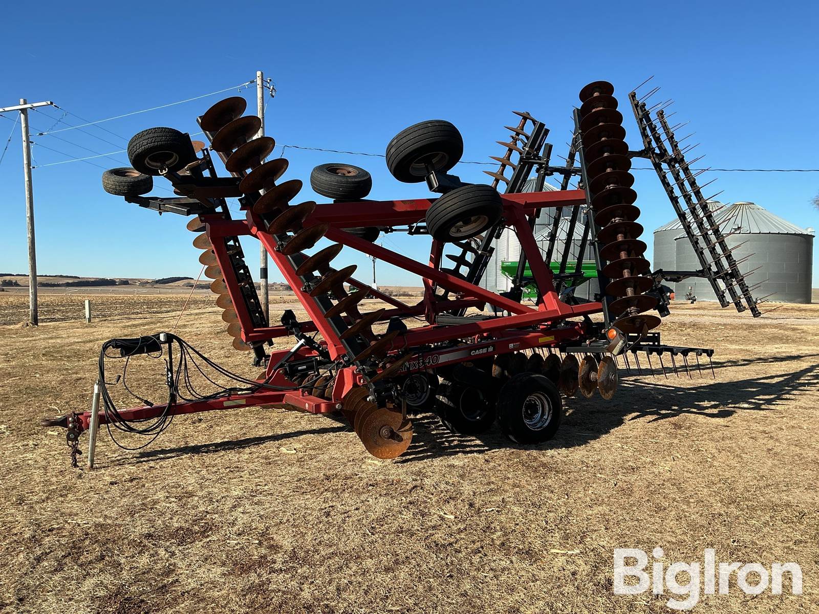 2007 Case IH RMX 340 Tandem Disk, Pintle Hitch, Safety Chains, 3 Hydraulics to Operate, Approximately 31’ Working Width, Hydraulic Fore/Aft Adjustment, Cast Standards, 9” Blade Spacing, 20.5” Front Blades, 20” Rear Blades, Center Cultivator Shovel, Case International 3 Bar Harrow Attachment, Rear Hazard Lights, 8 Bolt Hubs, Goodyear 12.5L-15 Floatation Tires, NOTE: See Photos for Overall Condition, Item Must Be Removed by April 20, 2026 or Will Be Considered Abandoned, SN: JFH0030326