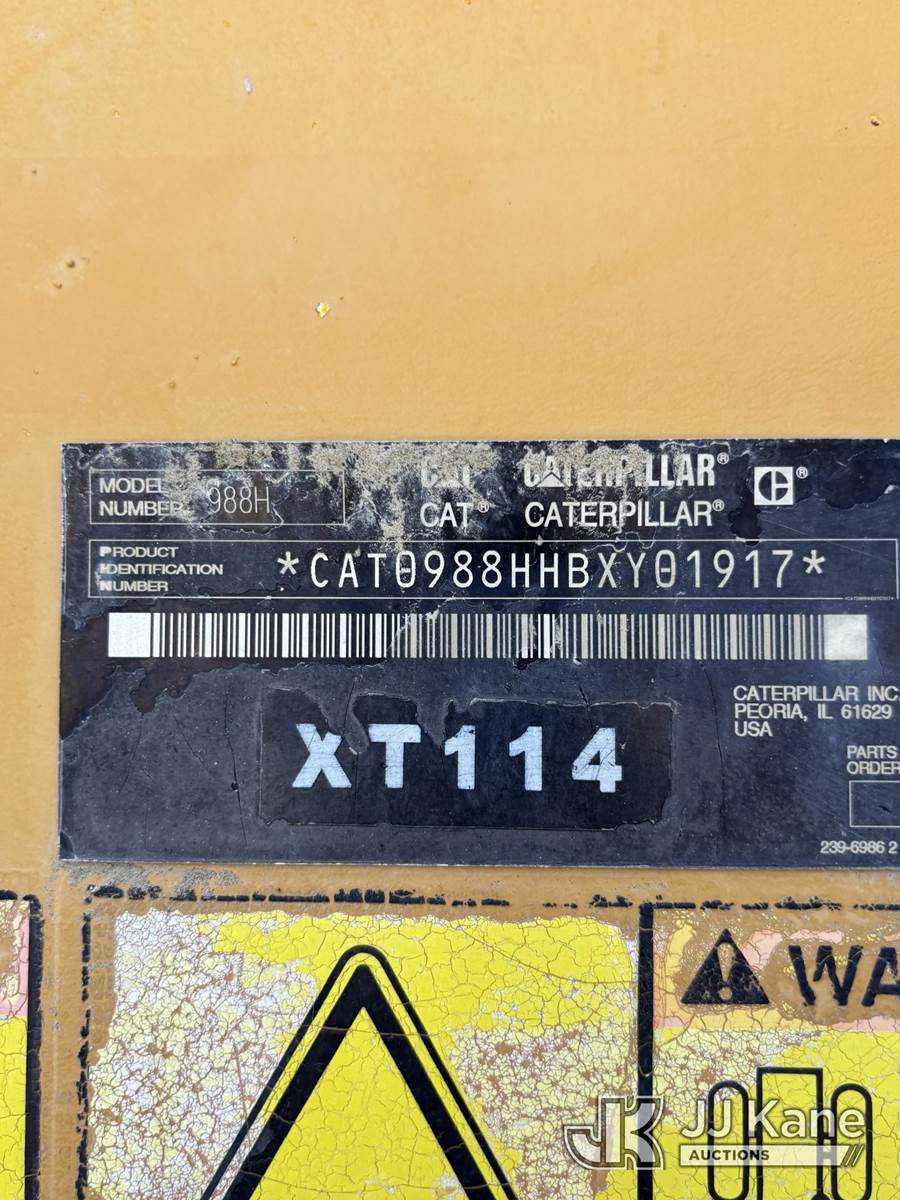 2007 CAT 988H Articulating Wheel Loader, s/n CAT0988HHBXY01917, Cat C18 ACERT, diesel powershift, with EROPS,, (Runs & Moves) (Cosmetic Rust, Bucket Wear, and Dust from Storage; Runs & moves) (Reads 35,126 hours) NOTE: This unit is being sold AS IS/WHERE IS via Timed Auction and is located in Desert Hot Springs, CA. (Buyer is responsible for removal. Assistance by consignor or JJ Kane Auctioneers is not assured.)