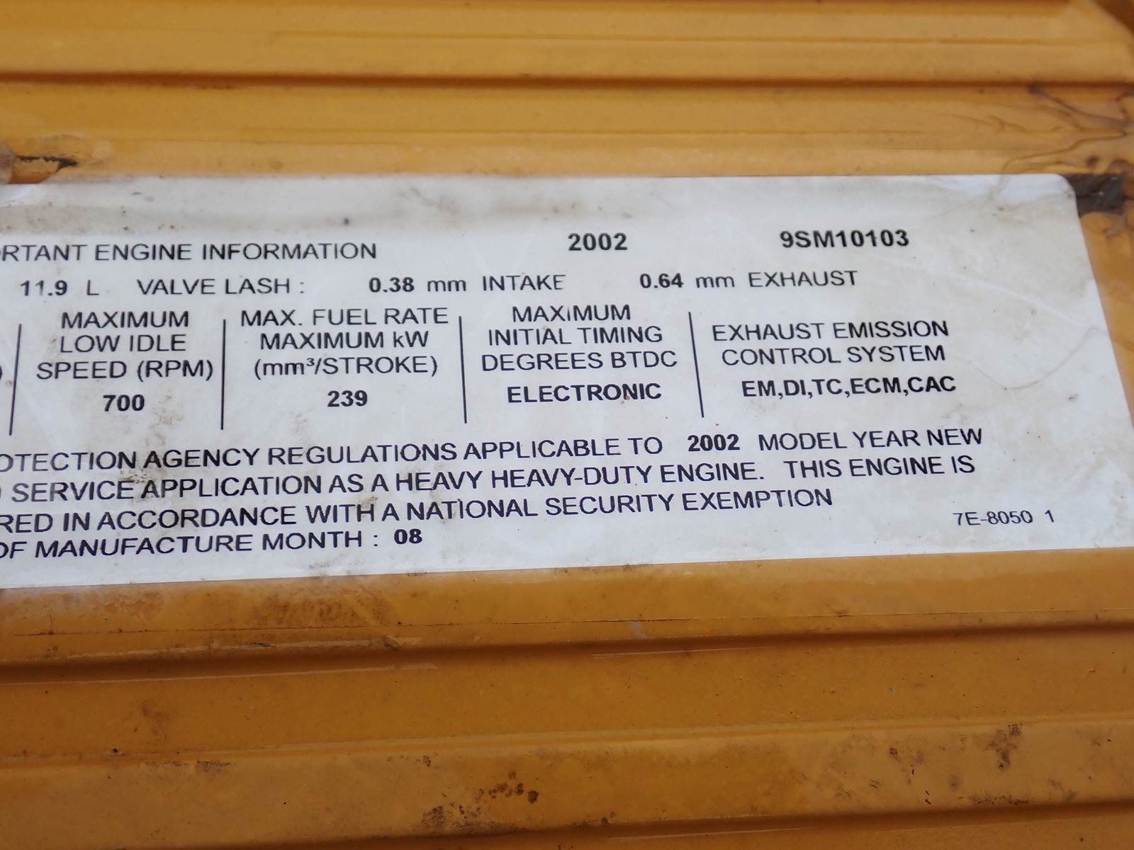 2007 Caterpillar C7 diesel engine, truck/on-road applications, MILITARY SURPLUS, FMM prefix, arrangement # 209-2395, 330 HP rating, 857...