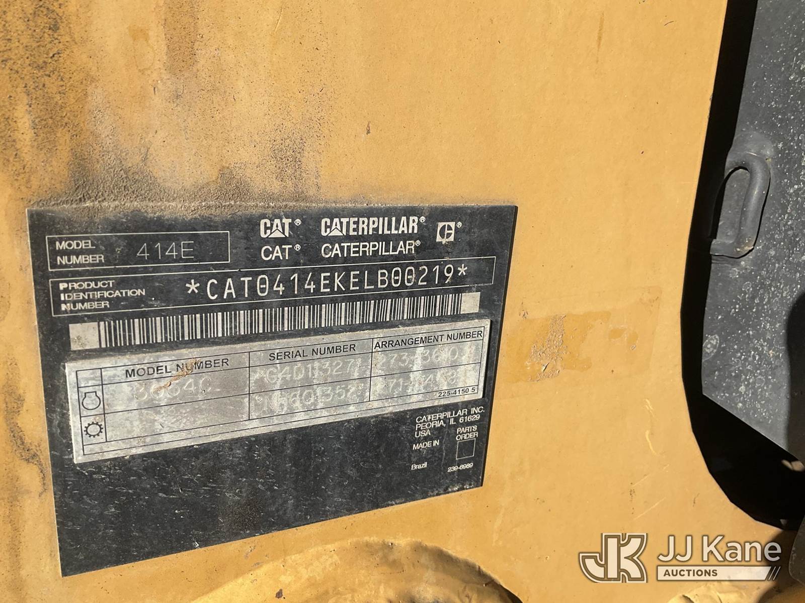 2007 Caterpillar 414E Tractor Loader, s/n CAT0414EKELB00219, Cat P, diesel, 4-spd, with rear box scraper, 8 Rippers , (Runs, Moves, & Operates ) (Reads 3,564 hours) May be subject to ARB Regulations NOTE: This unit is being sold AS IS/WHERE IS via Timed Auction and is located in Jurupa Valley, CA. Inspection & preview days for this unit are the 2 business days prior to the first day of items closing for this auction, item is located at 4510 Muth Way Jurupa Valley, CA 92509 and hours of operations are 8a-4p. For pre-sale questions, please contact please contact Office Staff @ (310) 353-7140. Dealer License Number 45696. (Buyer is responsible for removal. Assistance by consignor or JJ Kane Auctions is not assured.)