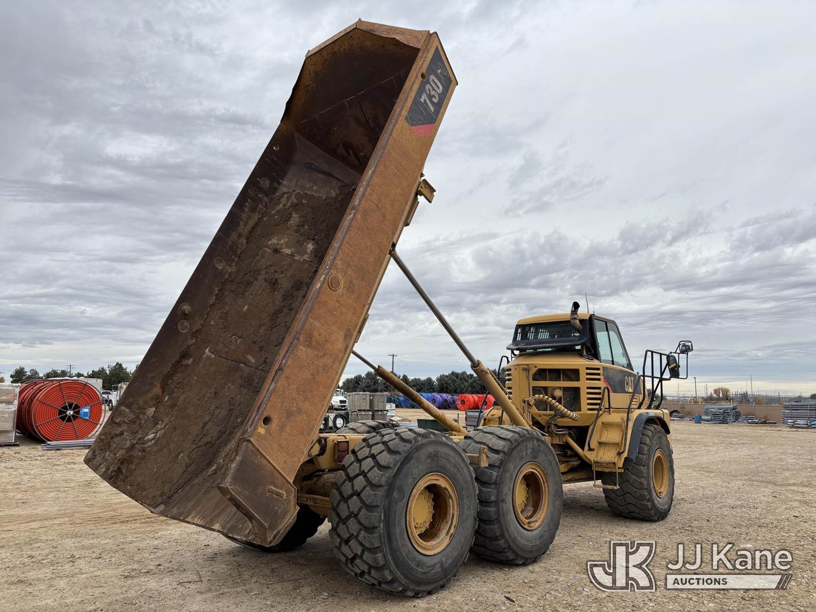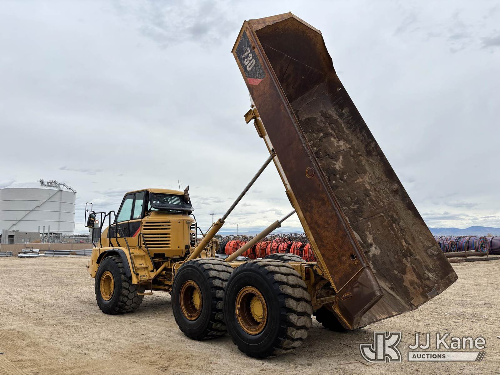 2007 Caterpillar 730 6x6 ADT Articulating Dump Truck, s/n CAT00730JB1M01339, Cat C11 ACERT powershift 6F/ 1R, diesel, A/C, with 31-ton articulated dump truck, EROPS, central articulation with oscillation, steel body, hydraulic hoist, heaped approx. 17-18 yd³, struck approx. 12-13 yd³, (Runs, Moves & Dump Bed Operates) (Reads 14,031 hours) NOTE: This unit is being sold AS IS/WHERE IS via Timed Auction and is located in Nampa, ID. For more information & removal arrangements please contact Joel @ 208-964-0025. (Buyer is responsible for removal. Assistance by consignor or JJ Kane Auctioneers is not assured.)