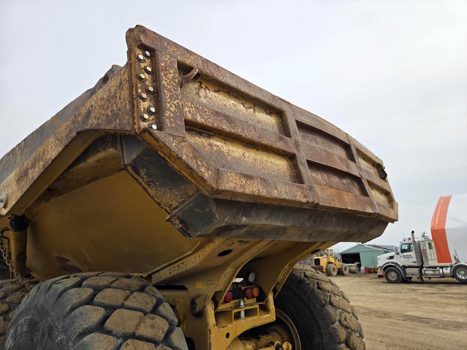 Caterpillar C15 Turbo Diesel Engine, Automatic Powershift Transmission, Diff Lock, Approx. 30yd³ Box Capacity, Walking Beam Suspension, EROPS, Buddy Seat, Heat/AC, 29.5R25 Tires