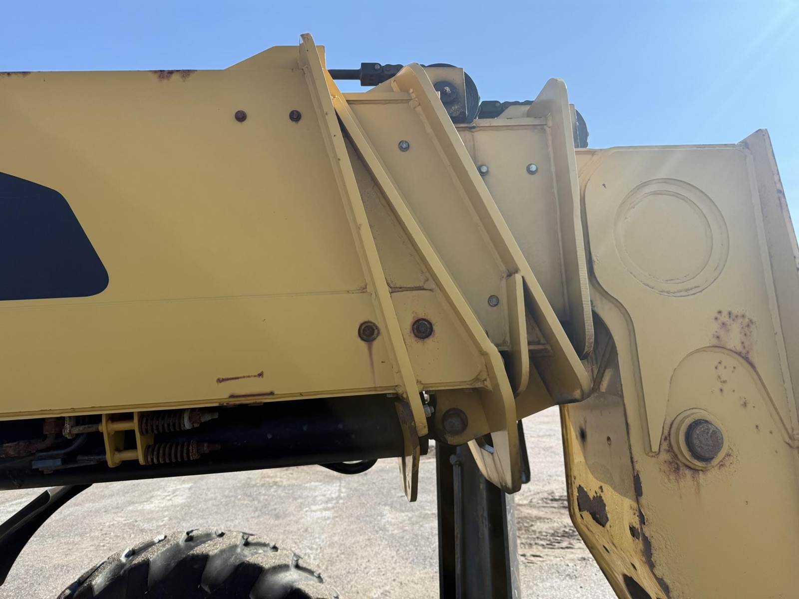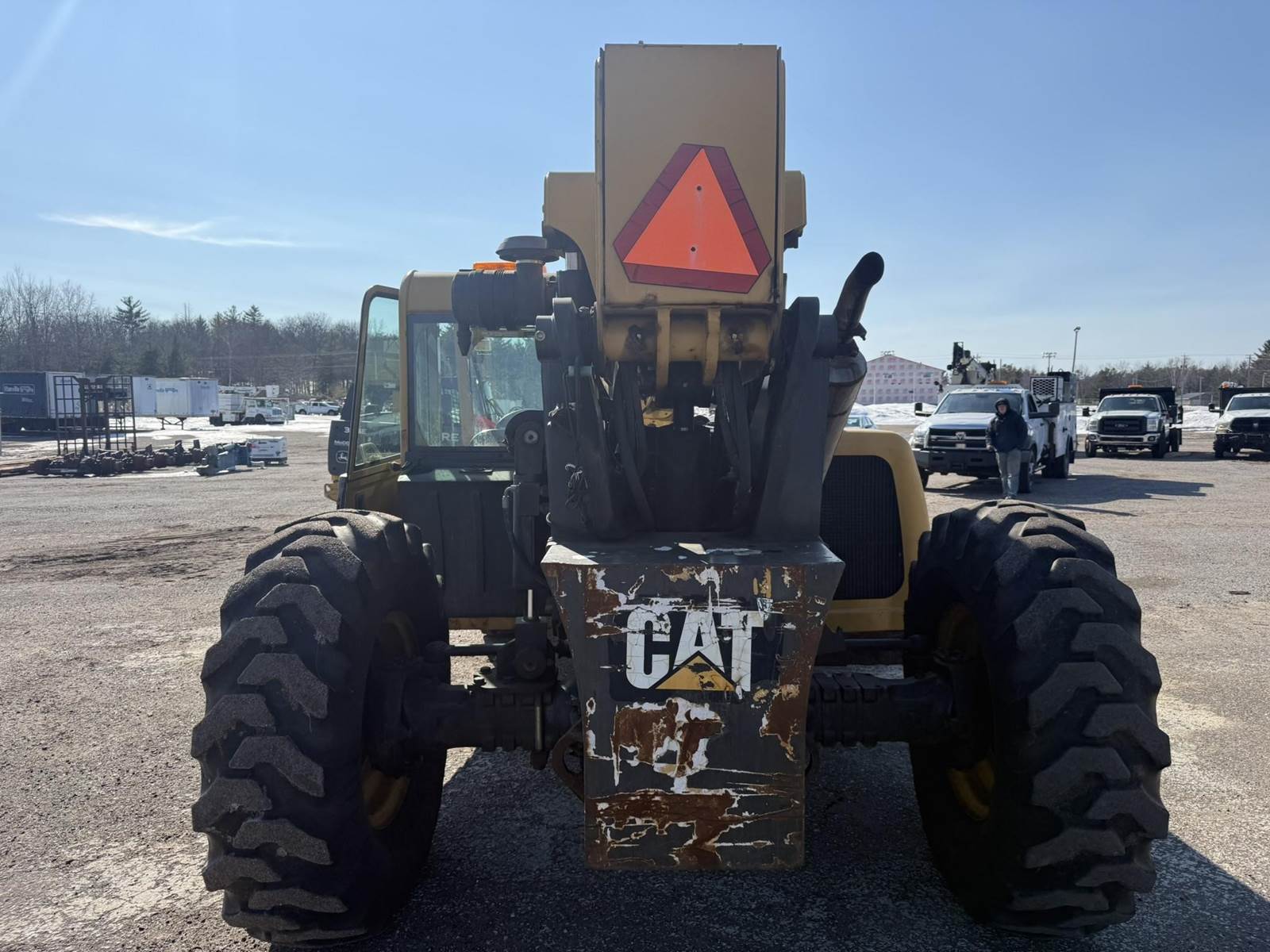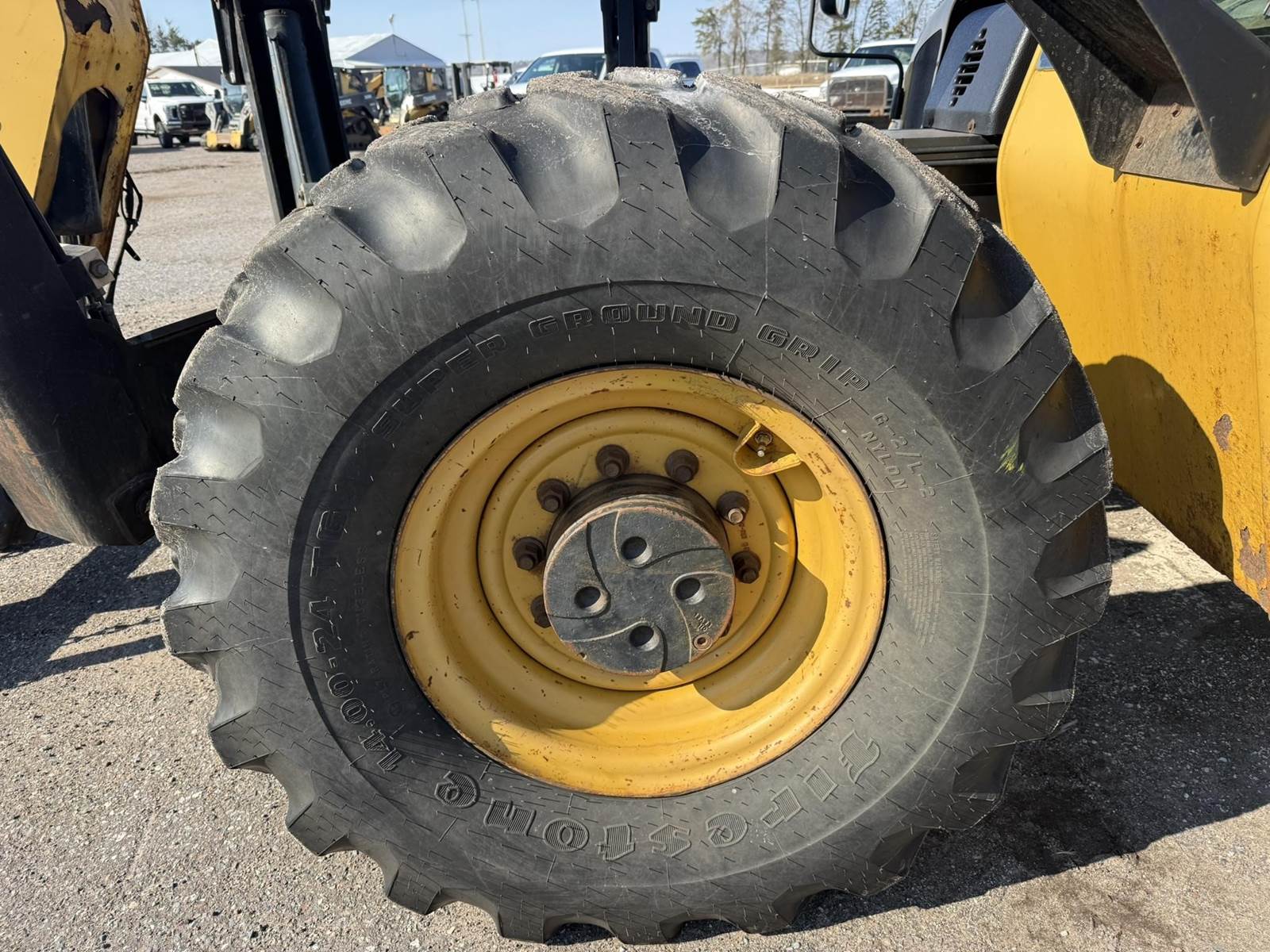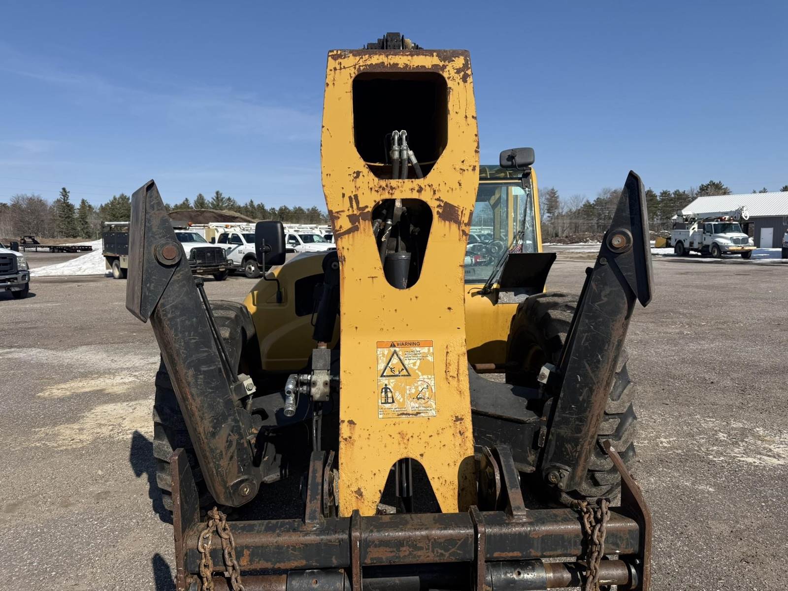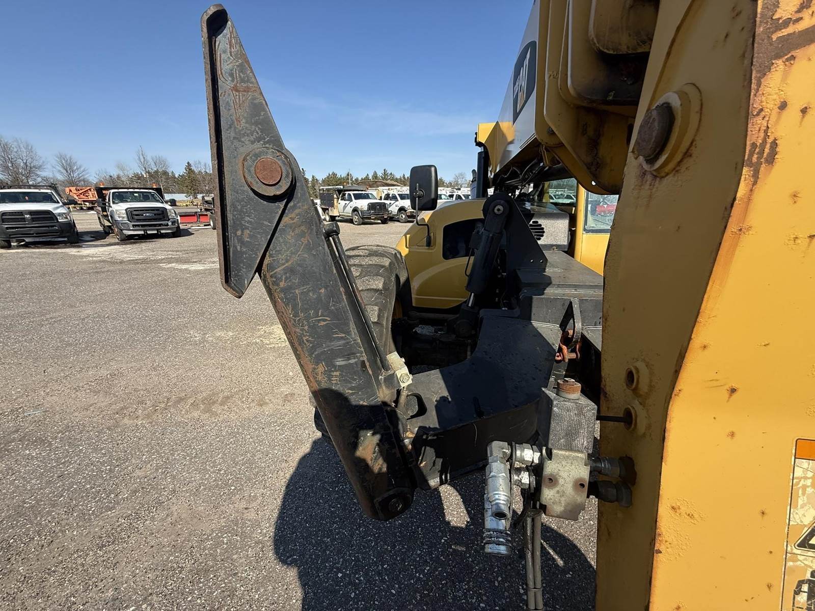 Caterpillar Turbo Diesel Engine, 4 Speed Transmission, Frame Leveling, Hydraulic Front Outriggers, Approx 10000lb Maximum Lift, Front Auxiliary Hydraulics, Hydraulic Quick Attach, EROPS, Heat/Ac, 14.00-24 Tires