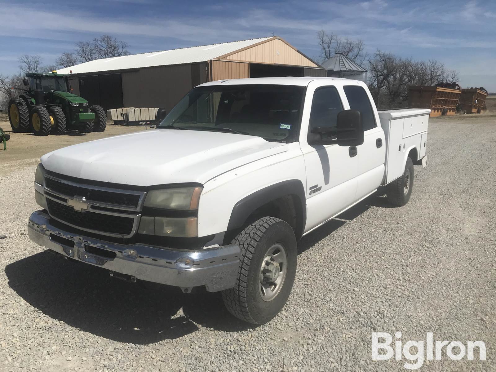 2007 Chevrolet 3500 4x4 Service Pickup, 274,390 miles showing, Title Will Be Marked Miles Exempt, Duramax LBZ 6.6, Diesel, Block Heater, Electric Start, Allison, 6 Forward Speeds, Automatic Transmission, 4WD, Spring Suspension, Electric Brakes, Power Brakes, 265/75R16 Front Tires, 265/75R16 Rear Tires, Aluminum Rims, Manual Adj. 5th Wheel, Heater, AC, Radio, 4 Doors, Reading Utility Box. Vise. LED work Lights. Air Bags on Rear. NOTE: Seat ripped. Engine Light is on. Temperature Control Knobs are missing. Dents. Paint is Peeling. Bumper is missing cover. Missing Driver Side Running Board. Missing Door Handle on back passenger side. Cracked Windshield, VIN: 1GCHK33D57F171329