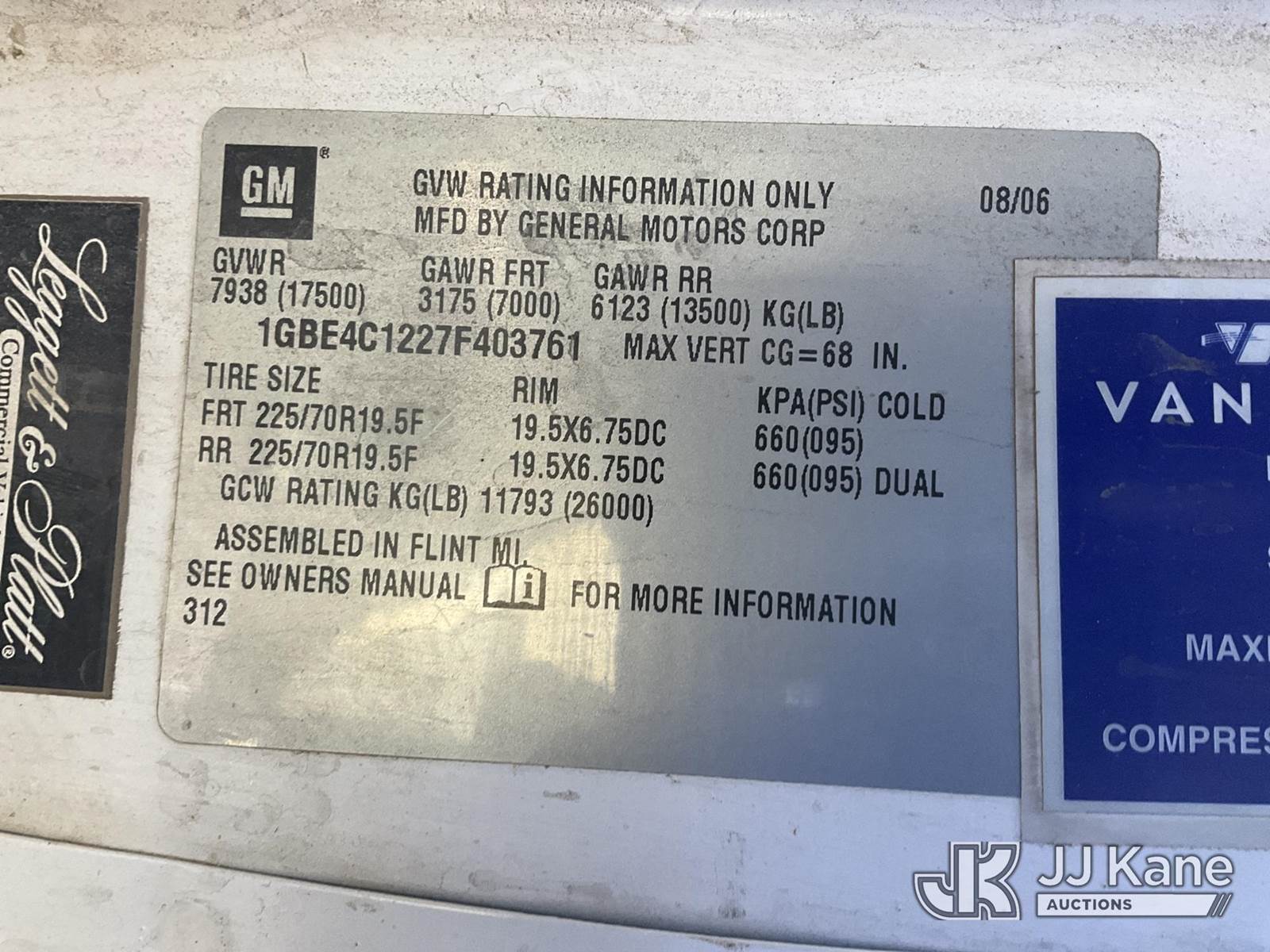 2007 Chevrolet C4500 Air Compressor/Enclosed Utility Truck, 6.6L Turbo Diesel 4X2, Auto, A/C, True Mileage Unknown (Not Running, Condition Unknown) (Rust Damage) This is a Titled Item NOTE: This unit is being sold AS IS/WHERE IS via Timed Auction and is located in Verona, KY. Inspection & preview days for this unit are the 2 business days prior to the first day of items closing for this auction, item is located at 2841 Verona-Mudlick Rd Ste B Verona, KY 41092 and hours of operations are 8a-4p. For pre-sale questions, please contact Office Staff @ (502) 612-5080. Auctioneer Michael Whitebread / License # 256617. (Buyer is responsible for removal. Assistance by consignor or JJ Kane Auctions is not assured.)