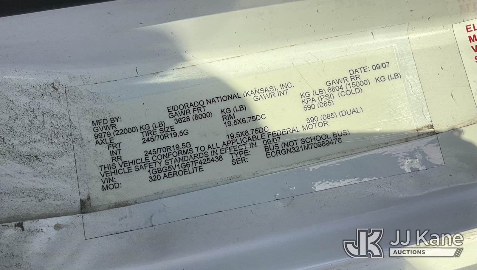 2007 Chevrolet C5V042 Passenger Bus, 8-cyl gas, Auto, 4X2, A/C, (33,748 miles) (Runs & Moves) This is a Titled Item NOTE: This unit is being sold AS IS/WHERE IS via Timed Auction and is located in Jurupa Valley, CA. Inspection & preview days for this unit are the 2 business days prior to the first day of items closing for this auction, item is located at 4510 Muth Way Jurupa Valley, CA 92509 and hours of operations are 8a-4p. For pre-sale questions, please contact please contact Office Staff @ (310) 353-7140. Dealer License Number 45696. (Buyer is responsible for removal. Assistance by consignor or JJ Kane Auctioneers is not assured.)