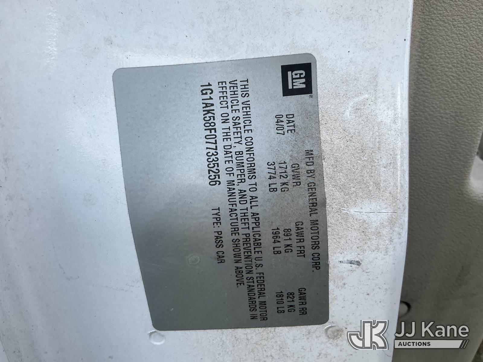 2007 Chevrolet Cobalt 4-Door Sedan, 4-cyl gas, Auto, A/C, True Mileage Unknown (Not Running, Condition Unknown) (No Key, Paint Damage) This is a Titled Item NOTE: This unit is being sold AS IS/WHERE IS via Timed Auction and is located in Florence, SC. Inspection & preview days for this unit are by appointment only; please contact us at contact@jjkane.com or 84-Go-JJKane for more details. (Buyer is responsible for removal. Assistance by consignor or JJ Kane Auctioneers is not assured.)