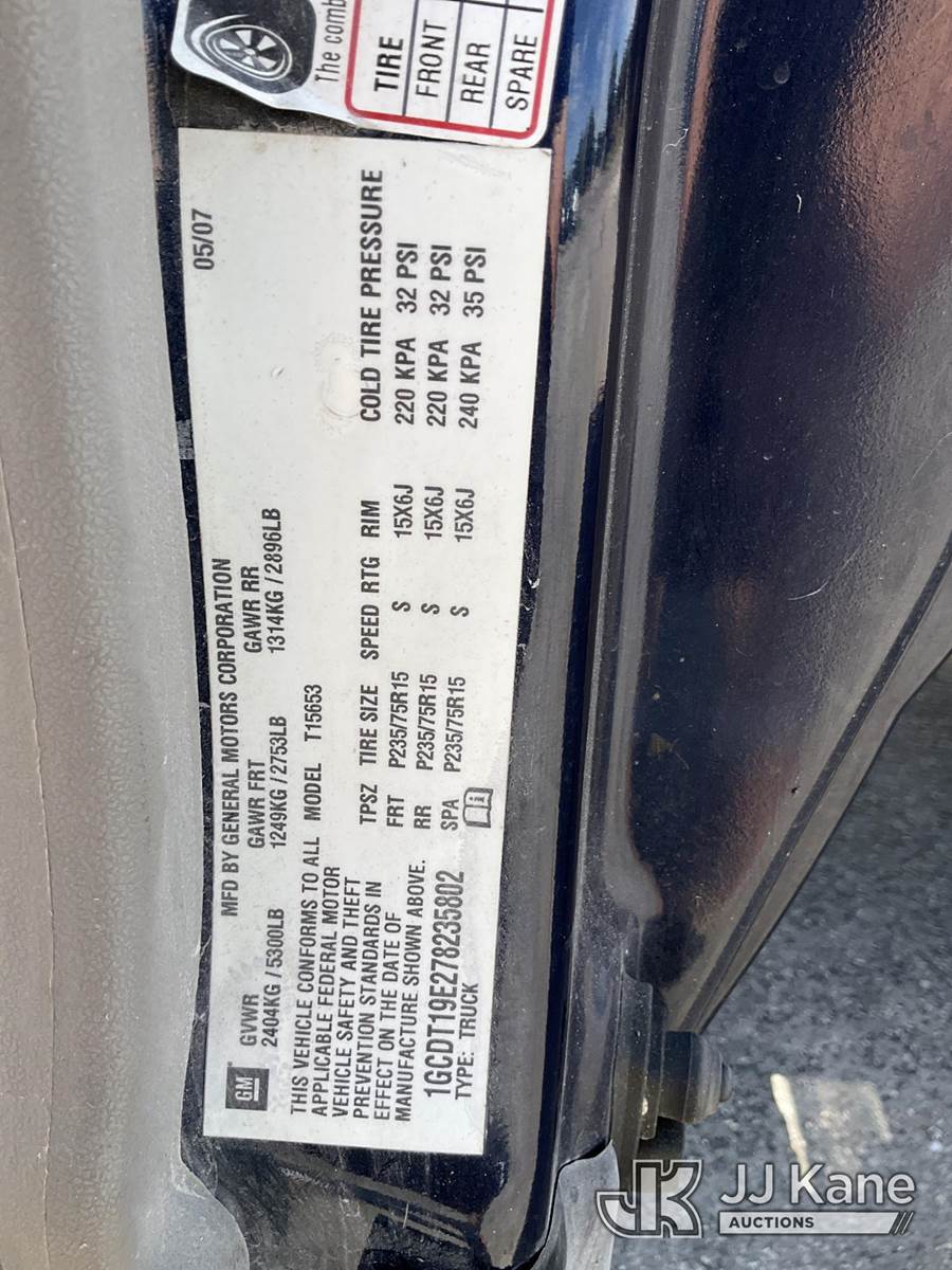 2007 Chevrolet Colorado 4x4 Extended-Cab Pickup Truck, 3.7L L5 DOHC 20V gas, 4-Speed Automatic, A/C, (155,512 miles) (Runs & Moves) (Glove Box Door Broken, Surface Rust On Frame, Body/Paint Damage) This is a Titled Item NOTE: This unit is being sold AS IS/WHERE IS via Timed Auction and is located in Ocala, FL. Inspection & preview days for this unit are by appointment only; please contact us at contact@jjkane.com or 84-Go-JJKane for more details. For more information & removal arrangements please contact Mike Lessard @ (352) 629-6677. (Buyer is responsible for removal. Assistance by consignor or JJ Kane Auctions is not assured.)
