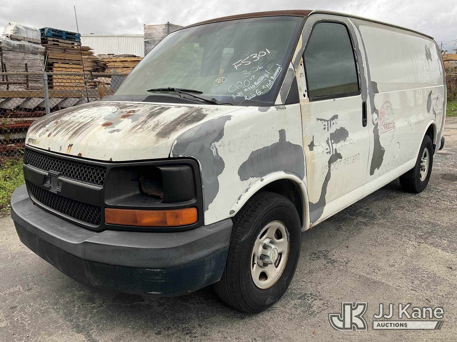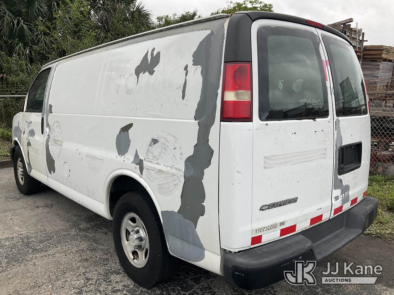 2007 Chevrolet Express 1500 Cargo Van, 6-cyl gas, RWD, 4-Speed Automatic, A/C, True Mileage Unknown (Seller States: Vehicle Does Not Run, Operating Condition Unknown) (Battery & Headlights Missing, Mirrors On Both Doors Missing, Driver Door Panel Missing, Paint Damage & Rust) (FL Residents Purchasing Titled Items – tax, title & registration fees will be collected at the maximum rate of $400.00 under 25,999 and $800.00 for Over 26,000 and $250.00 for Trailers – Proof of insurance is mandatory; Out of State Residents Purchasing Title Items – tax will be collected based upon your state rate) This is a Titled Item NOTE: This unit is being sold AS IS/WHERE IS via Timed Auction and is located in West Palm Beach, FL. Inspection & preview days for this unit are the 2 business days prior to the first day of items closing for this auction, item is located at 2570 Old Okeechobee Rd West Palm Beach, FL 33409 and hours of operations are 8a-4p. For pre-sale questions, please contact Andy Garcia @ (561) 215-0085. (Buyer is responsible for removal. Assistance by consignor or JJ Kane Auctions is not assured.)