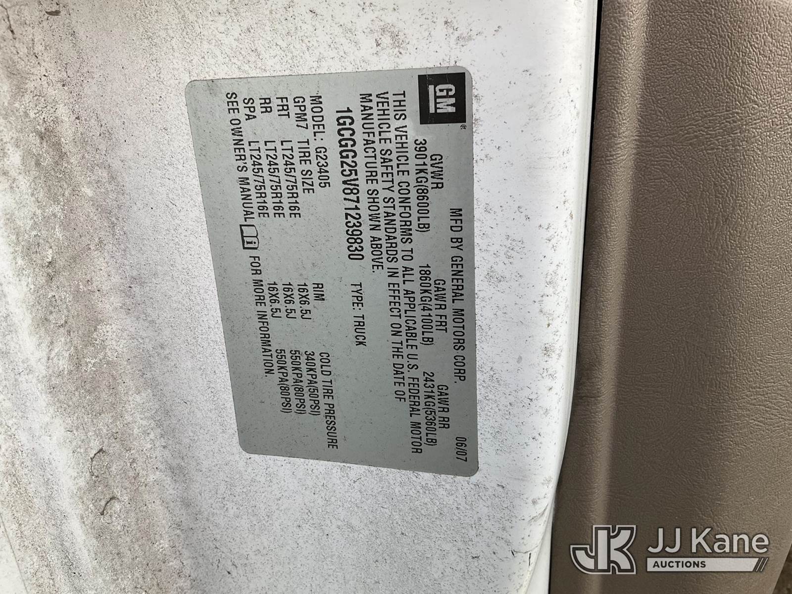 2007 Chevrolet Express 2500 Cargo Van, s/n 1GCGG25V871239830, 4.8L V8 OHV 16V Gas 4-Speed Automatic, RWD, A/C, (75,344 miles) (Not Running, Condition Unknown) (Key Ignition Won't Turn Completely, Rust Damage, Interior Stripped Of Parts, Must Be Towed) (Bidding Restricted to Licensed Vehicle Dealers Only), This is a Titled Item NOTE: This unit is being sold AS IS/WHERE IS via Timed Auction and is located in Jurupa Valley, CA. Inspection & preview days for this unit are the 2 business days prior to the first day of items closing for this auction, item is located at 4510 Muth Way Jurupa Valley, CA 92509 and hours of operations are 8a-4p. For pre-sale questions, please contact please contact Office Staff @ (310) 353-7140. Dealer License Number 45696. (Buyer is responsible for removal. Assistance by consignor or JJ Kane Auctions is not assured.)