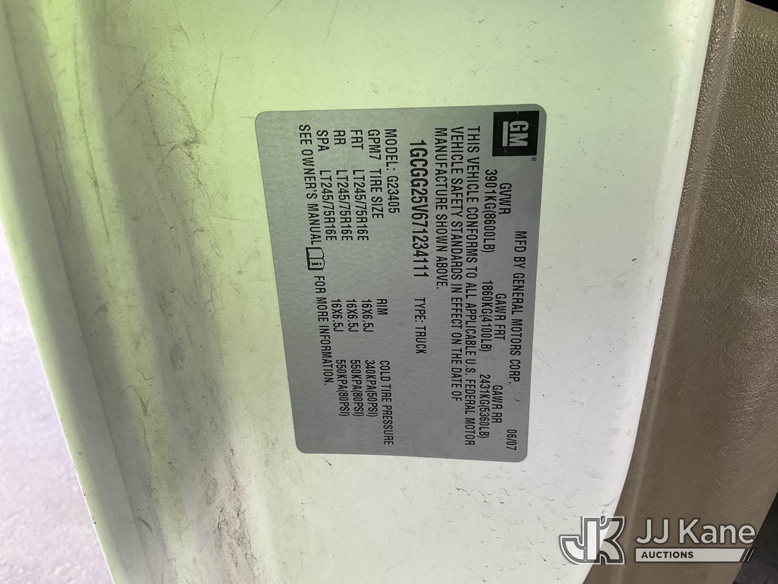 2007 Chevrolet Express 2500 Cargo Van, 8-cyl gas, 4-Speed Automatic, A/C, (117,432 miles (unverified)) (Runs & Moves) (Passenger Side Blinker Light Out) (Bidding Restricted to Licensed Vehicle Dealers Only), This is a Titled Item NOTE: This unit is being sold AS IS/WHERE IS via Timed Auction and is located in Jurupa Valley, CA. Inspection & preview days for this unit are the 2 business days prior to the first day of items closing for this auction, item is located at 4510 Muth Way Jurupa Valley, CA 92509 and hours of operations are 8a-4p. For pre-sale questions, please contact please contact Office Staff @ (310) 353-7140. Dealer License Number 45696. (Buyer is responsible for removal. Assistance by consignor or JJ Kane Auctions is not assured.)