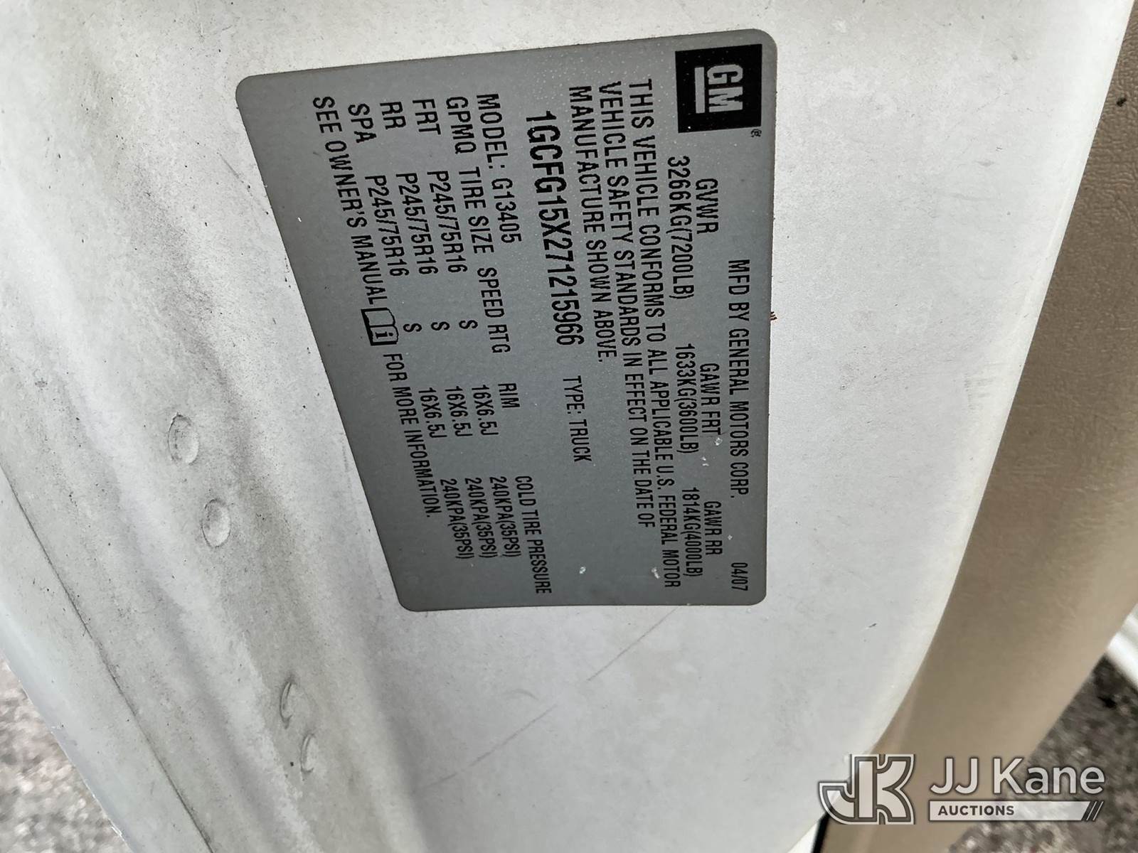 2007 Chevrolet Express G1500 Cargo Van, 6-cyl gas, Auto, A/C, (157,996 miles) (Not Running, Condition Unknown) (Paint/Body Damage) (Exempt from Odometer Disclosure)(FL Residents Purchasing Titled Items - tax, title & registration fees will be collected at the maximum rate of $400.00 under 25,999 and $800.00 for Over 26,000 and $250.00 trailers - Proof of insurance is mandatory; Out of State Residents Purchasing Title Items - tax will be collected based upon your state rate.) This is a Titled Item NOTE: This unit is being sold AS IS/WHERE IS via Timed Auction and is located in Thonotosassa, FL. Inspection & preview days for this unit are the 2 business days prior to the first day of items closing for this auction, item is located at 11720 N US 301 Thonotosassa, Fl 33592 and hours of operations are 8a-4p. For pre-sale questions, please contact Office Staff @ (813) 986-2485. (Buyer is responsible for removal. Assistance by consignor or JJ Kane Auctioneers is not assured.)