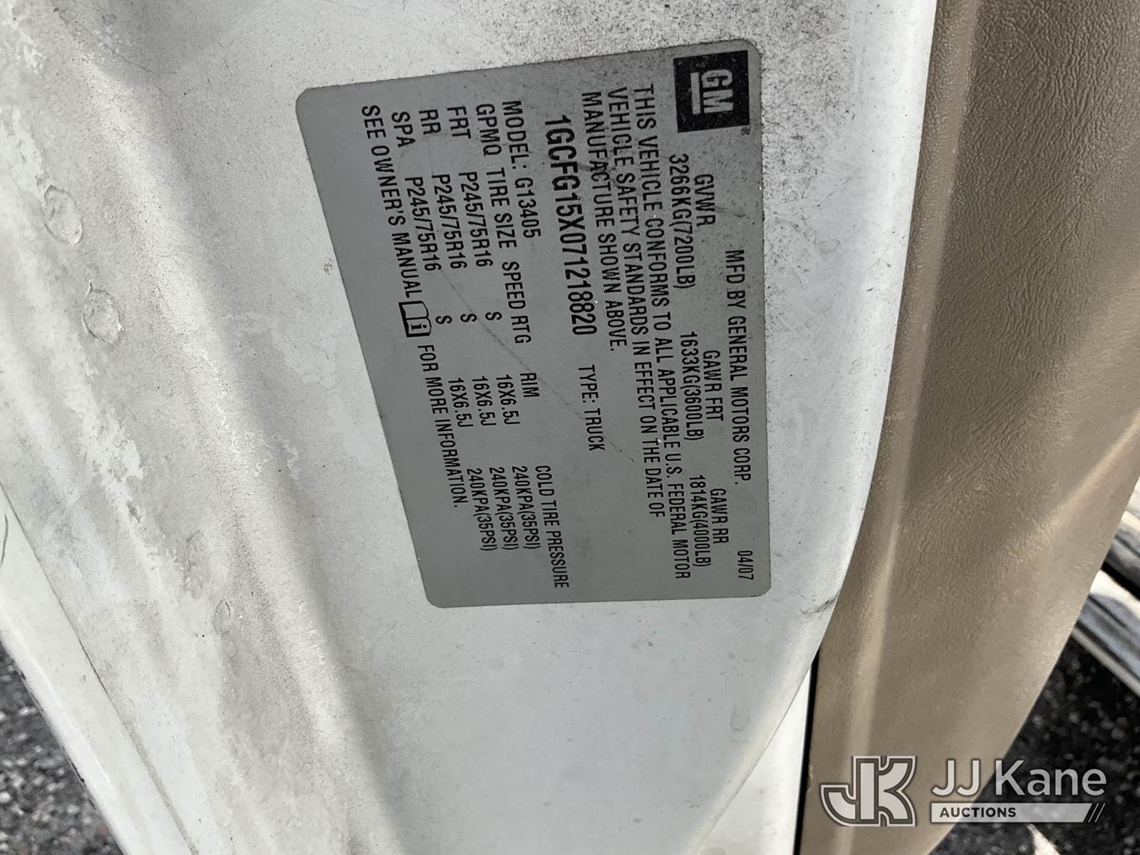 2007 Chevrolet Express G1500 Cargo Van, 4.3L V6 OHV 12V gas, RWD, 4-Speed Automatic, A/C, (148,081 miles) (Not Running, Condition Unknown) (Won’t Stay Running, Paint Damage) (FL Residents Purchasing Titled Items – tax, title & registration fees will be collected at the maximum rate of $400.00 under 25,999 and $800.00 for Over 26,000 and $250.00 trailers – Proof of insurance is mandatory; Out of State Residents Purchasing Title Items – tax will be collected based upon your state rate.) This is a Titled Item NOTE: This unit is being sold AS IS/WHERE IS via Timed Auction and is located in Thonotosassa, FL. Inspection & preview days for this unit are the 2 business days prior to the first day of items closing for this auction, item is located at 11720 N US 301 Thonotosassa, Fl 33592 and hours of operations are 8a-4p. For pre-sale questions, please contact Office Staff @ (813) 986-2485. (Buyer is responsible for removal. Assistance by consignor or JJ Kane Auctions is not assured.)