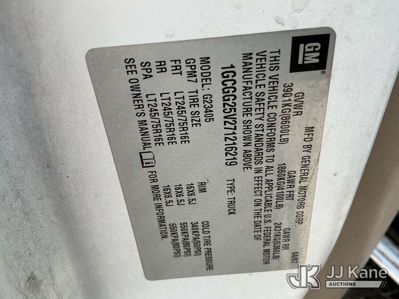 2007 Chevrolet Express G2500 Cargo Van, 8-cyl gas, Auto, A/C, (205,943 miles) (Runs & Moves) (Paint/Body Damage) (Exempt from Odometer Disclosure)(FL Residents Purchasing Titled Items - tax, title & registration fees will be collected at the maximum rate of $400.00 under 25,999 and $800.00 for Over 26,000 and $250.00 trailers - Proof of insurance is mandatory; Out of State Residents Purchasing Title Items - tax will be collected based upon your state rate.) This is a Titled Item NOTE: This unit is being sold AS IS/WHERE IS via Timed Auction and is located in Thonotosassa, FL. Inspection & preview days for this unit are the 2 business days prior to the first day of items closing for this auction, item is located at 11720 N US 301 Thonotosassa, Fl 33592 and hours of operations are 8a-4p. For pre-sale questions, please contact Office Staff @ (813) 986-2485. (Buyer is responsible for removal. Assistance by consignor or JJ Kane Auctioneers is not assured.)