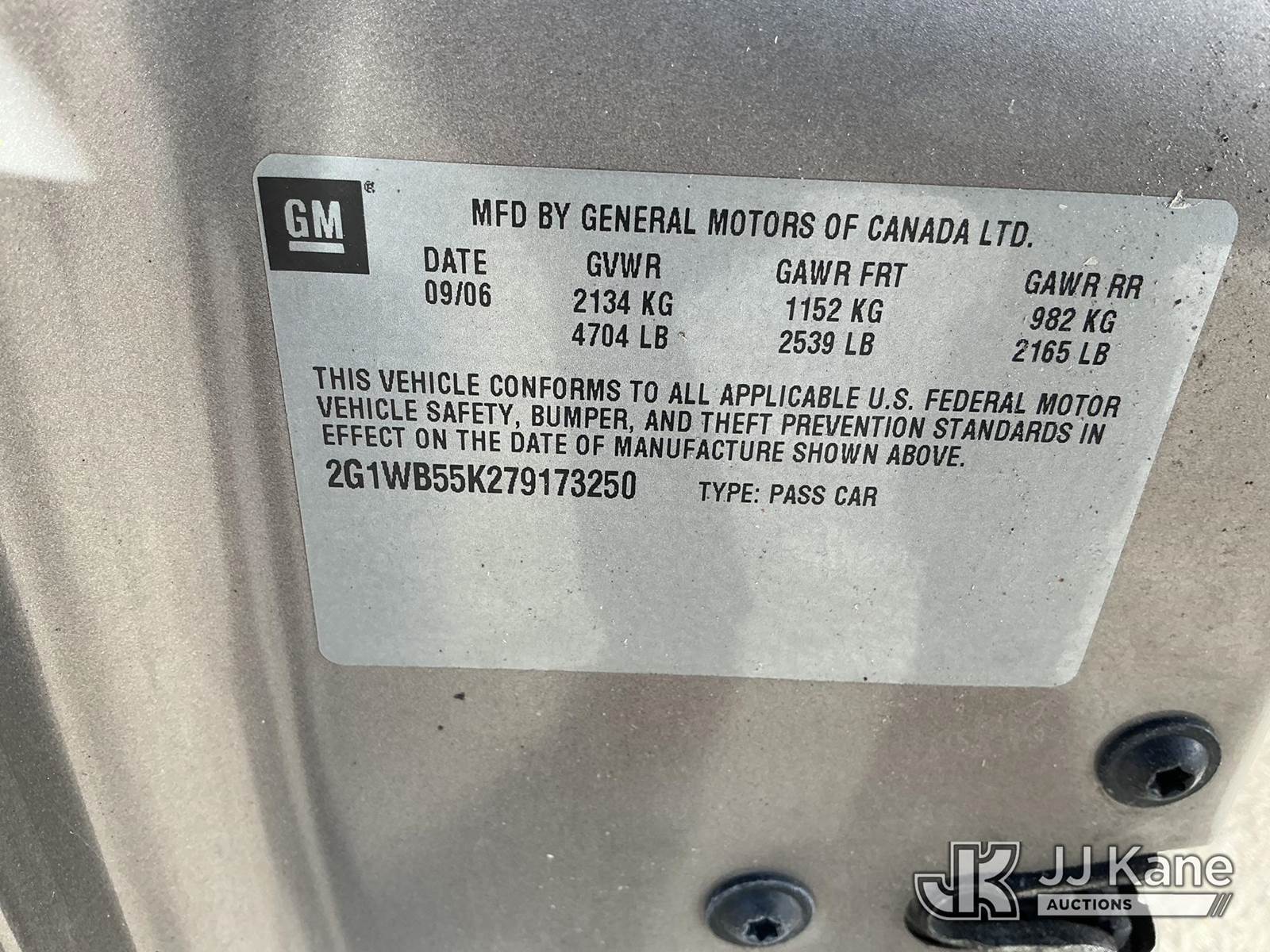 2007 Chevrolet Impala 4-Door Sedan, 6-cyl gas, Auto, A/C, (110,682 miles) (Runs & Moves) (FL Residents Purchasing Titled Items - tax, title & registration fees will be collected at the maximum rate of $400.00 under 25,999 and $800.00 for Over 26,000 and $250.00 trailers - Proof of insurance is mandatory; Out of State Residents Purchasing Title Items - tax will be collected based upon your state rate.) This is a Titled Item NOTE: This unit is being sold AS IS/WHERE IS via Timed Auction and is located in Thonotosassa, FL. Inspection & preview days for this unit are the 2 business days prior to the first day of items closing for this auction, item is located at 11720 N US 301 Thonotosassa, Fl 33592 and hours of operations are 8a-4p. For pre-sale questions, please contact Office Staff @ (813) 986-2485. (Buyer is responsible for removal. Assistance by consignor or JJ Kane Auctioneers is not assured.)