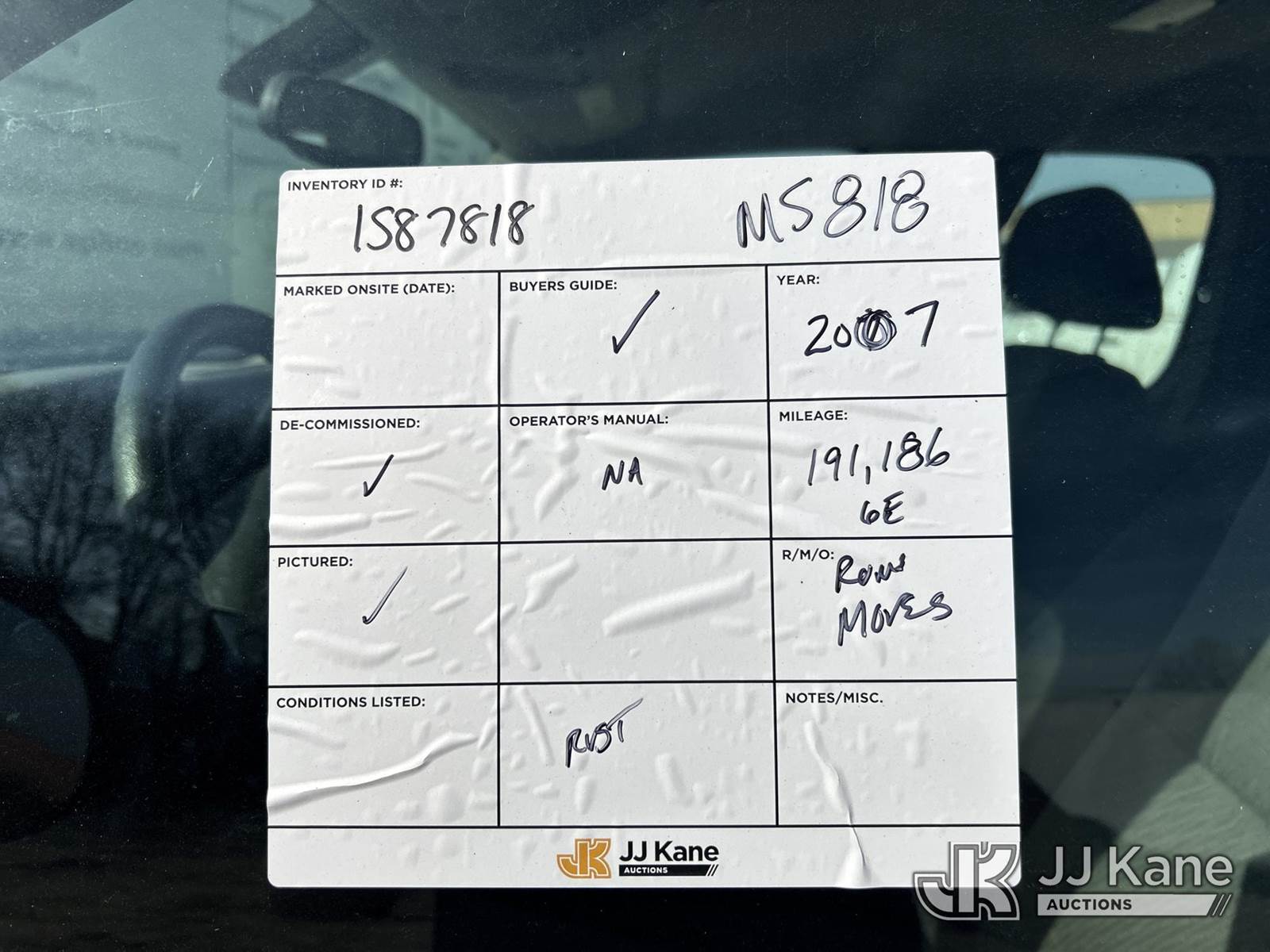 2007 Chevrolet Silverado 1500 4x4 Extended-Cab Pickup Truck, 4.8L V8 OHV 16V gas, 4-Speed Automatic, A/C, (191,186 miles) (Runs & Moves) (Check Engine Light On, Rust Damage) This is a Titled Item NOTE: This unit is being sold AS IS/WHERE IS via Timed Auction and is located in Shakopee, MN. Inspection & preview days for this unit are the 2 business days prior to the first day of items closing for this auction, item is located at 1109 Stagecoach Rd Shakopee, MN 55379 and hours of operations are 8a-3p. For pre-sale questions, please contact Office Staff @ (651) 421-3305. (Buyer is responsible for removal. Assistance by consignor or JJ Kane Auctions is not assured.)