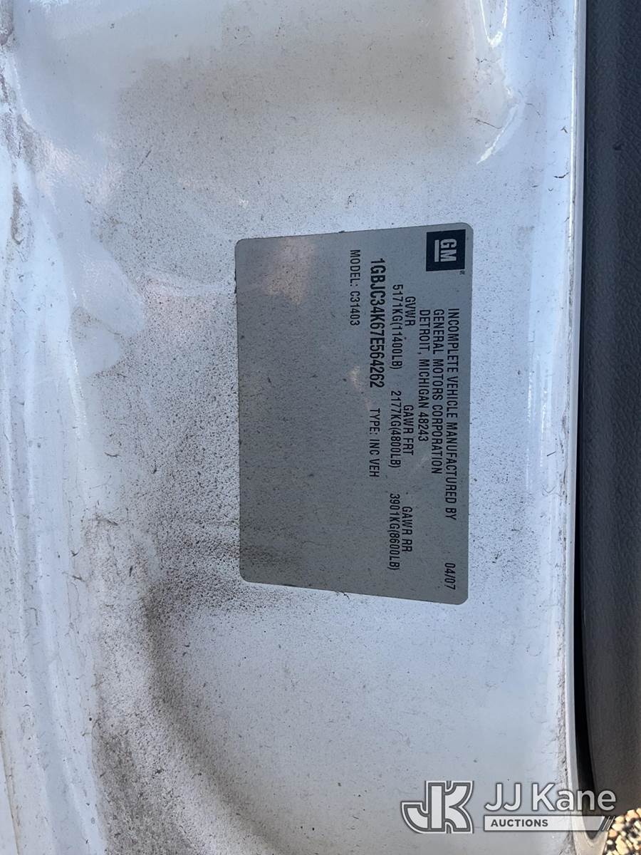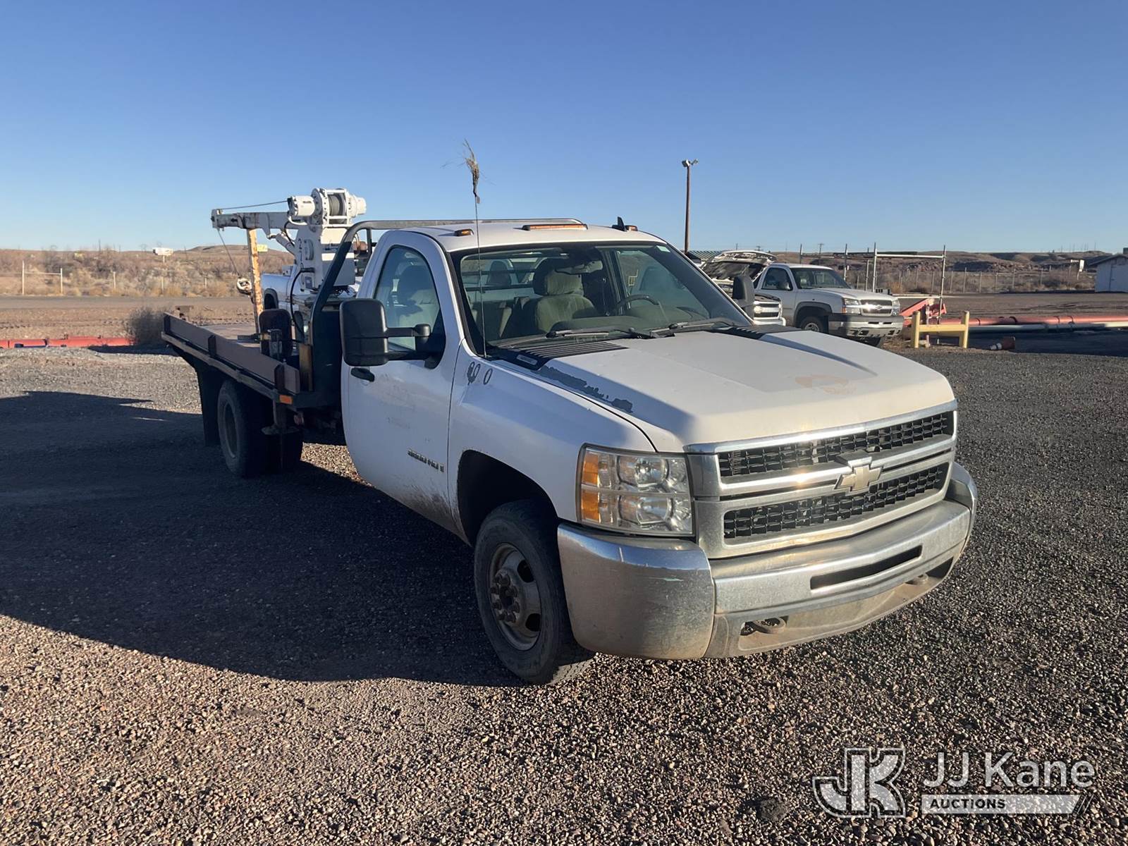 2007 Chevrolet Silverado 3500HD Flatbed Truck, 8-cyl gas, RWD, A/C, with Lift Moore truck crane 2700 lbs capacity, (36,840 miles) (Runs & Moves) (Paint Damage, Interior Worn, Truck Crane Does Not Operate, Driver’s Side Door Does Not Open From Inside) This is a Titled Item NOTE: This unit is being sold AS IS/WHERE IS via Timed Auction and is located in Joseph City, AZ. (Buyer is responsible for removal. Assistance by consignor or JJ Kane Auctions is not assured.)