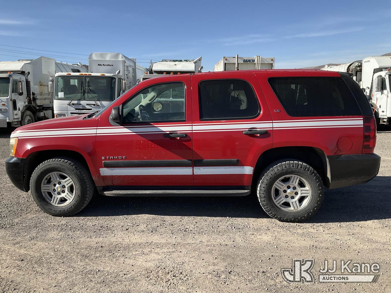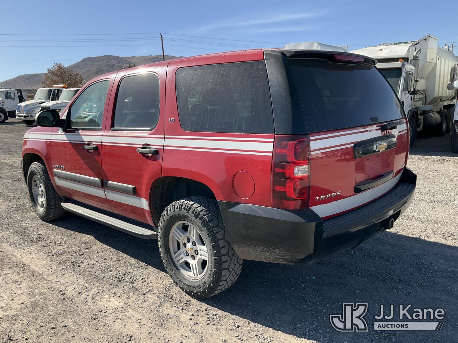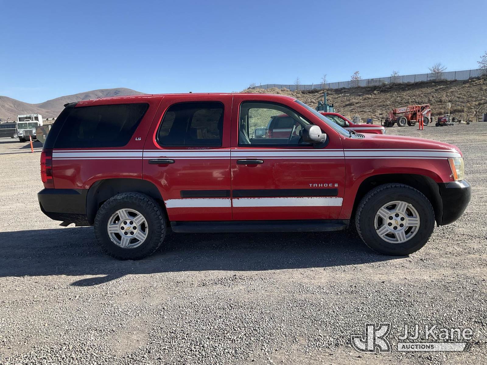 2007 Chevrolet Tahoe 4x4 4-Door Sport Utility Vehicle, 5.3L V8 OHV 16V FFV gas, 4-Speed Automatic, A/C, (178,053 miles) (Runs & Moves) (Electrical & Emergency Lighting Mounting Holes Throughout) This is a Titled Item NOTE: This unit is being sold AS IS/WHERE IS via Timed Auction and is located in Sparks, NV. Inspection & preview days for this unit are the 2 business days prior to the first day of items closing for this auction, item is located at 601 Britain Dr Sparks, NV 89437 and hours of operations are 8a-4p. Titles executed exactly as bidder registered. Ensure your name and/or business name and address in JJ Kane and/or ProxiBid is correct before bidding. For pre-sale questions, please contact Office Staff @ (801) 519-0123 and provide sale date and lot number. Sparks Dealer License Number DLR000052908 / OHV000052909. (Buyer is responsible for removal. Assistance by consignor or JJ Kane Auctions is not assured.)
