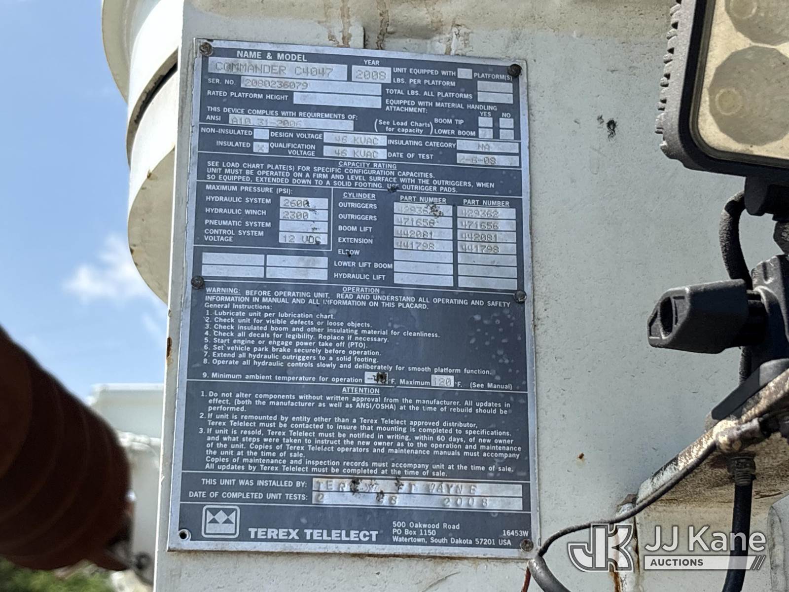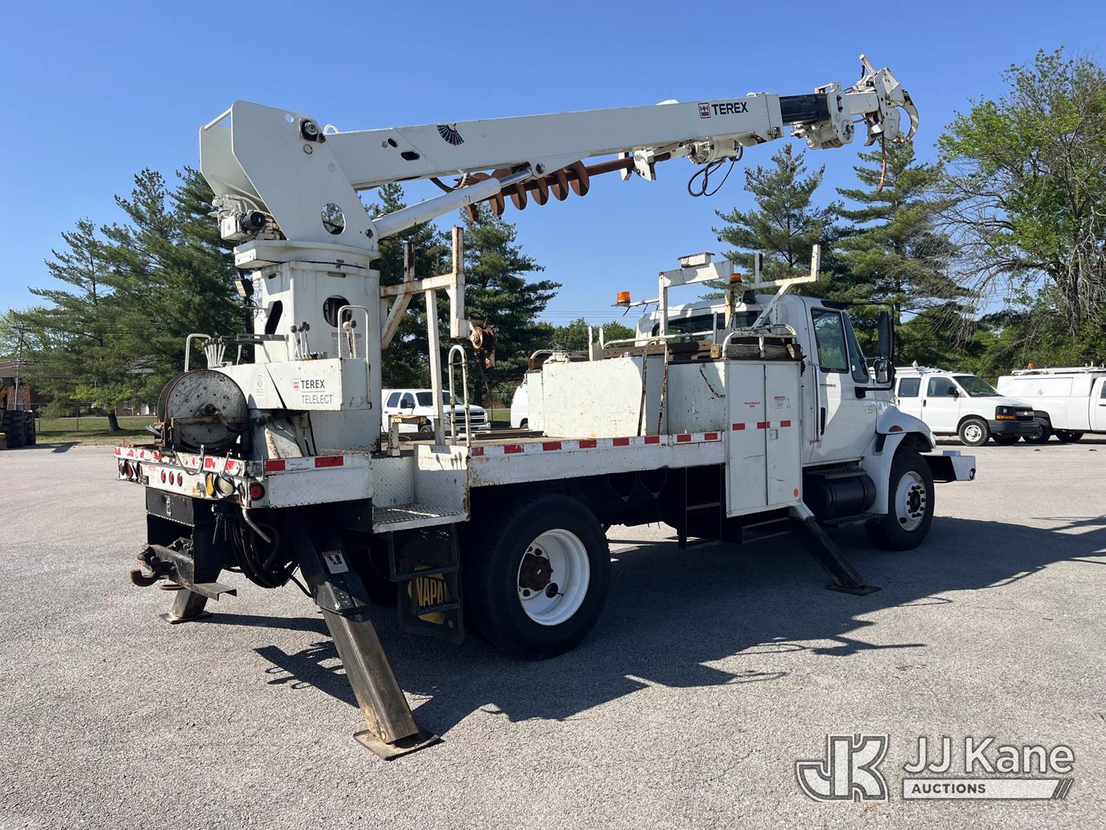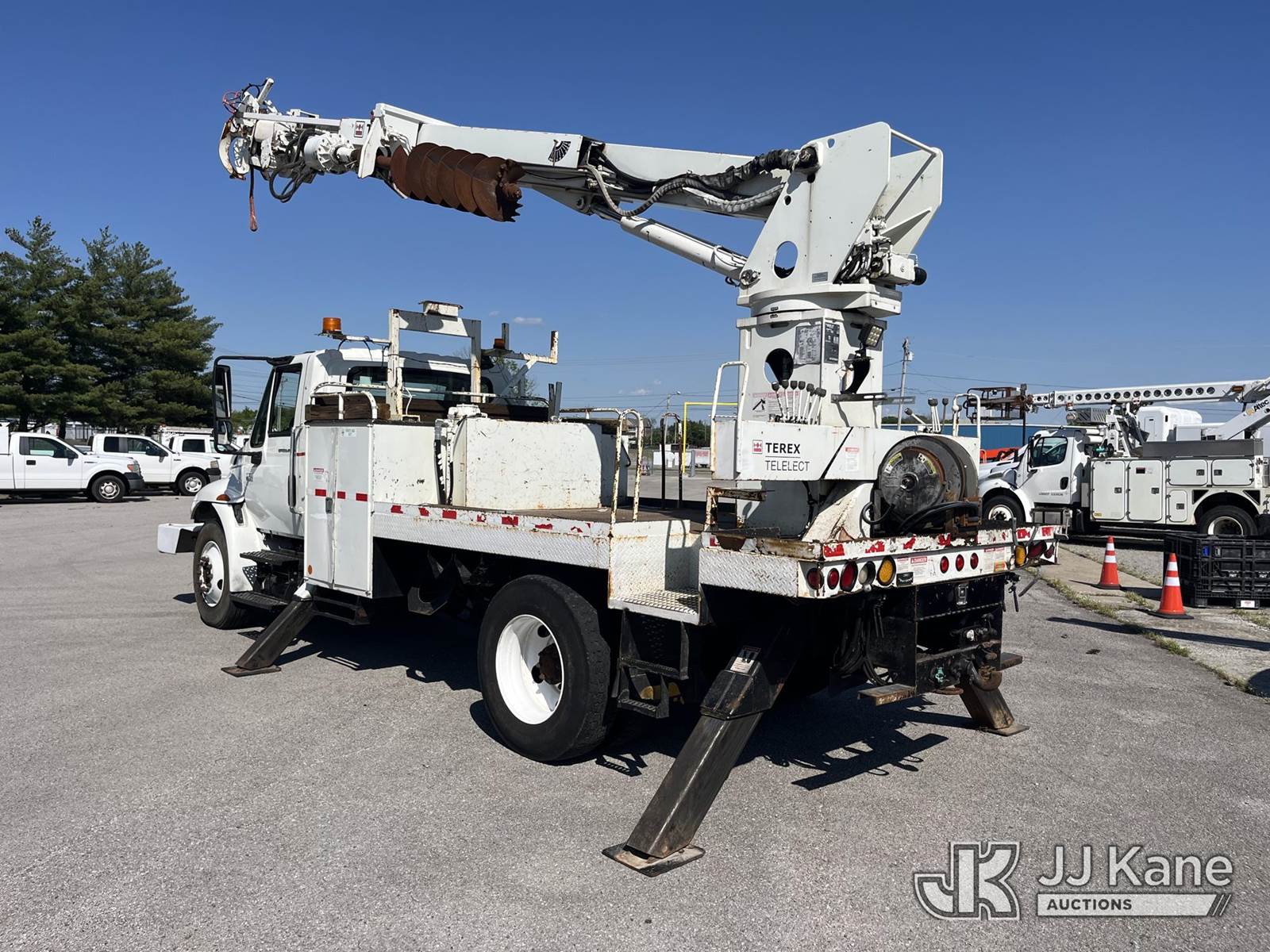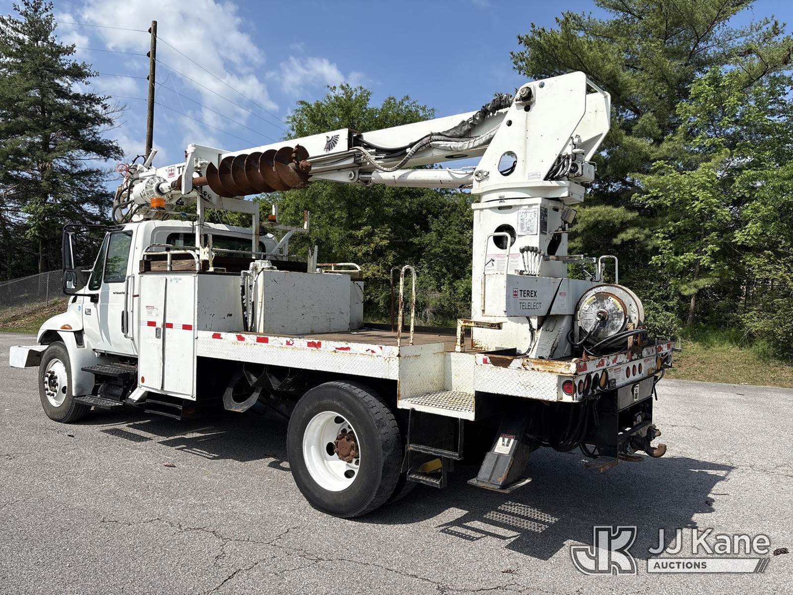 Commander C4047, Digger Derrick s/n 2080236079, with 47 ft. sheave height, 3 section hyd boom, 2 spd digger, tip winch, pole guides, dual stand up controls & 4 hyd outriggers, rear mounted on 2007 International 4300 Flatbed/Utility Truck, DT466 4X2, diesel, manual, A/C, with front winch, (72,601 miles) (Runs, Moves, & Operates) (Motor Issues, Body Damage) (Seller States: Needs Injection Drive Module) This is a Titled Item NOTE: This unit is being sold AS IS/WHERE IS via Timed Auction and is located in Lebanon, TN. Inspection & preview days for this unit are the 2 business days prior to the first day of items closing for this auction, item is located at 1442 Toshiba Dr Lebanon, TN 37087 and hours of operations are 8a-4p. For pre-sale questions, please contact Jon Kent @ (423) 558-7440 or Jon.Kent@jjkane.com. Dealer License #22511 (Manuals provided in cab) (Buyer is responsible for removal. Assistance by consignor or JJ Kane Auctions is not assured.)