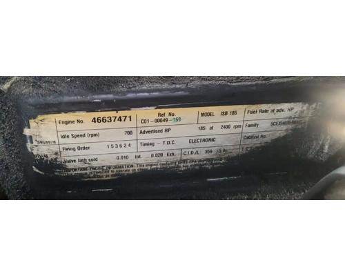 ISB, 5.9L, CM850; 185 HP; S/N 46637471; CPL 8136; DOM 2006