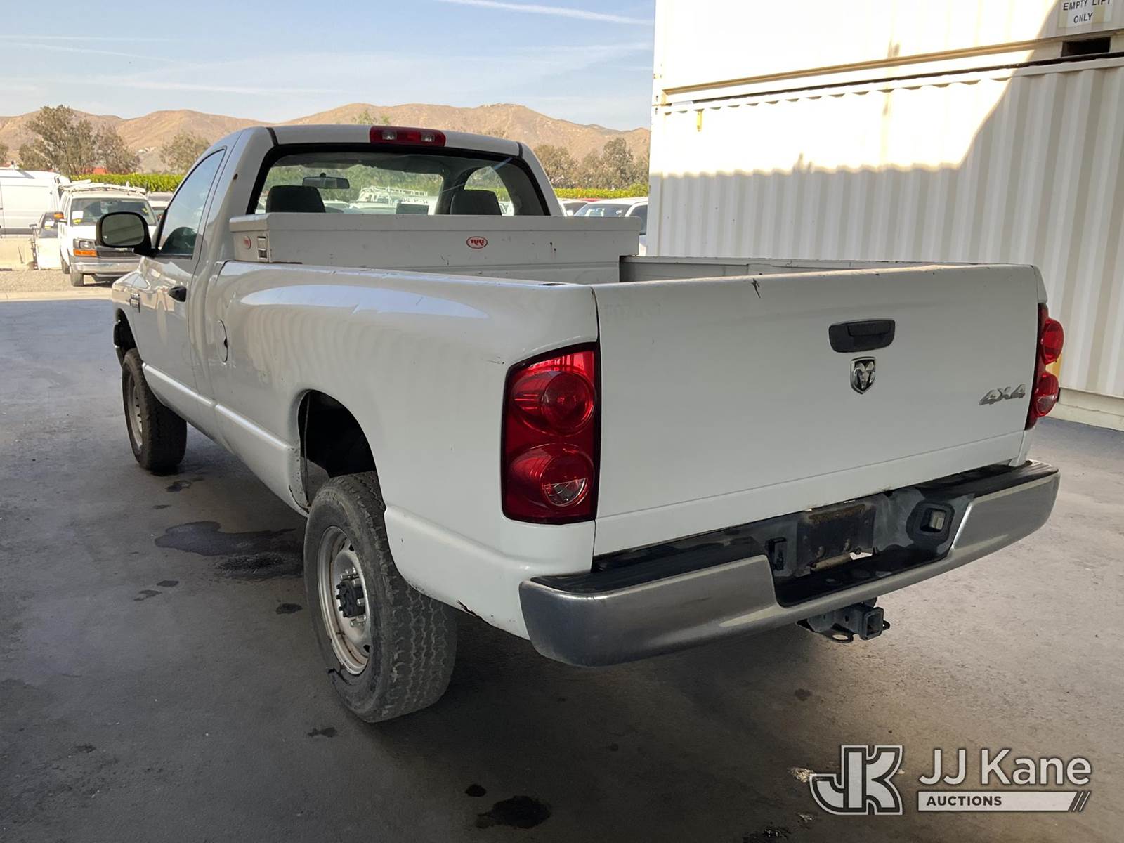 2007 Dodge Ram 2500 Pickup Truck, s/n 3D7KS26D97G828441, 5.7L V8 OHV 16V 4WD, GAS, Auto, A/C, with Tow package, toolbox, (144,266 miles) (Runs & Moves, Engine Light On, Frame Rust Damage) (Bidding Restricted to Licensed Vehicle Dealers Only), This is a Titled Item NOTE: This unit is being sold AS IS/WHERE IS via Timed Auction and is located in Jurupa Valley, CA. Inspection & preview days for this unit are the 2 business days prior to the first day of items closing for this auction, item is located at 4510 Muth Way Jurupa Valley, CA 92509 and hours of operations are 8a-4p. For pre-sale questions, please contact please contact Office Staff @ (310) 353-7140. Dealer License Number 45696. (Buyer is responsible for removal. Assistance by consignor or JJ Kane Auctions is not assured.)