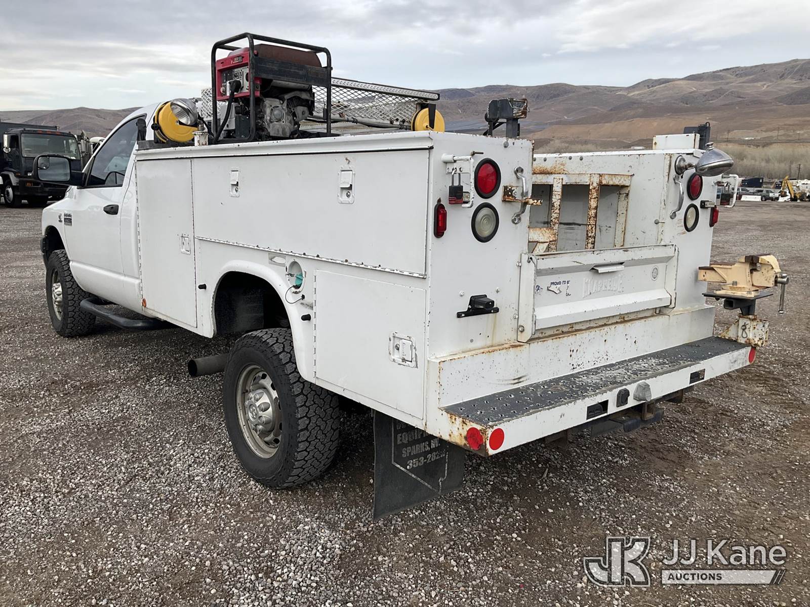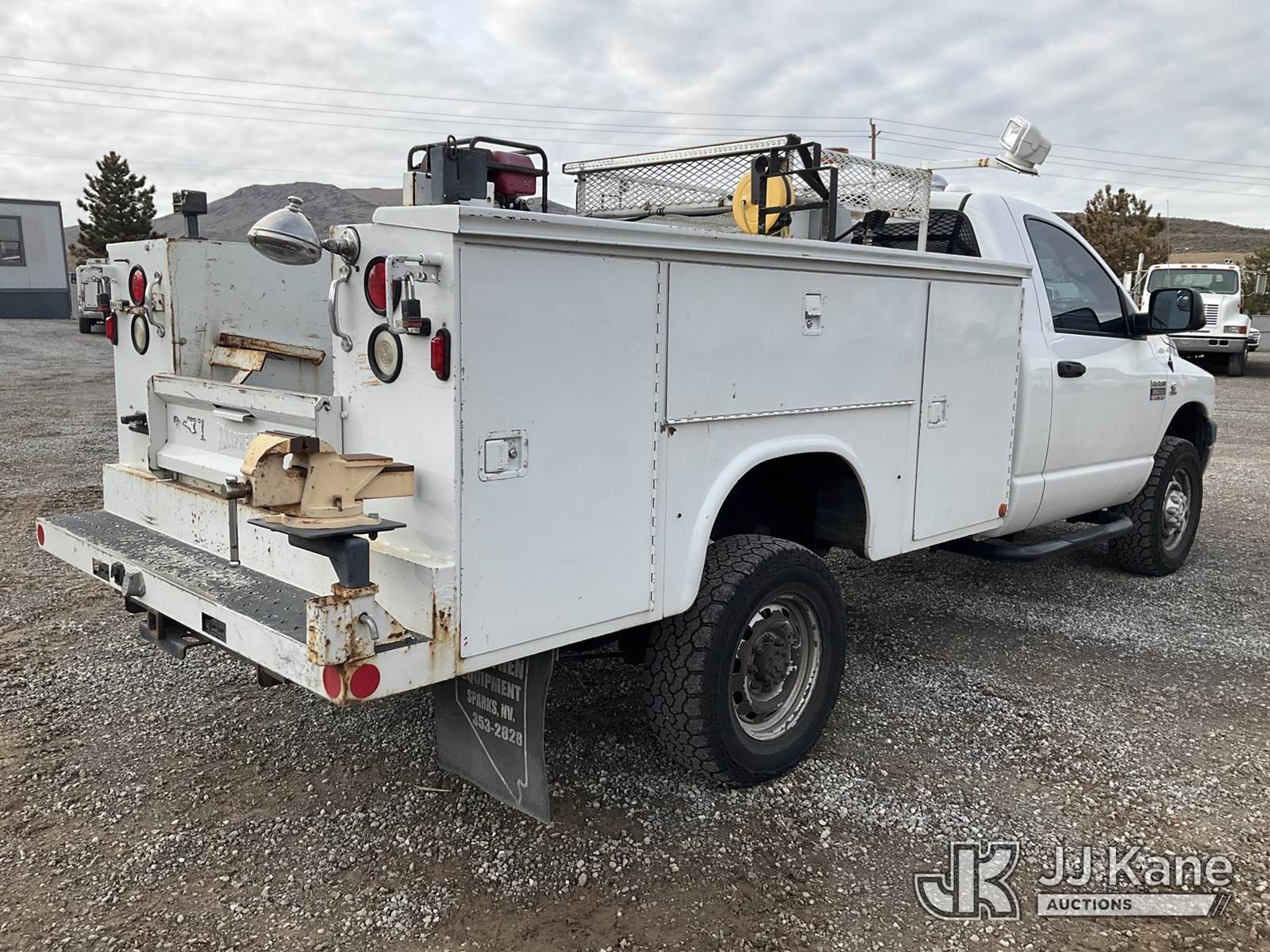 2007 Dodge Ram 3500 4x4 Service Truck, 6.7L L6 OHV 24V TURBO diesel, Auto, A/C, (208,001 miles) (Runs & Moves) (Check Engine Light On) This is a Titled Item NOTE: This unit is being sold AS IS/WHERE IS via Timed Auction and is located in Sparks, NV. Inspection & preview days for this unit are the 2 business days prior to the first day of items closing for this auction, item is located at 601 Britain Dr Sparks, NV 89437 and hours of operations are 8a-4p. Titles executed exactly as bidder registered. Ensure your name and/or business name and address in JJ Kane and/or ProxiBid is correct before bidding. For pre-sale questions, please contact Office Staff @ (801) 519-0123 and provide sale date and lot number. Sparks Dealer License Number DLR000052908 / OHV000052909. (Buyer is responsible for removal. Assistance by consignor or JJ Kane Auctions is not assured.)