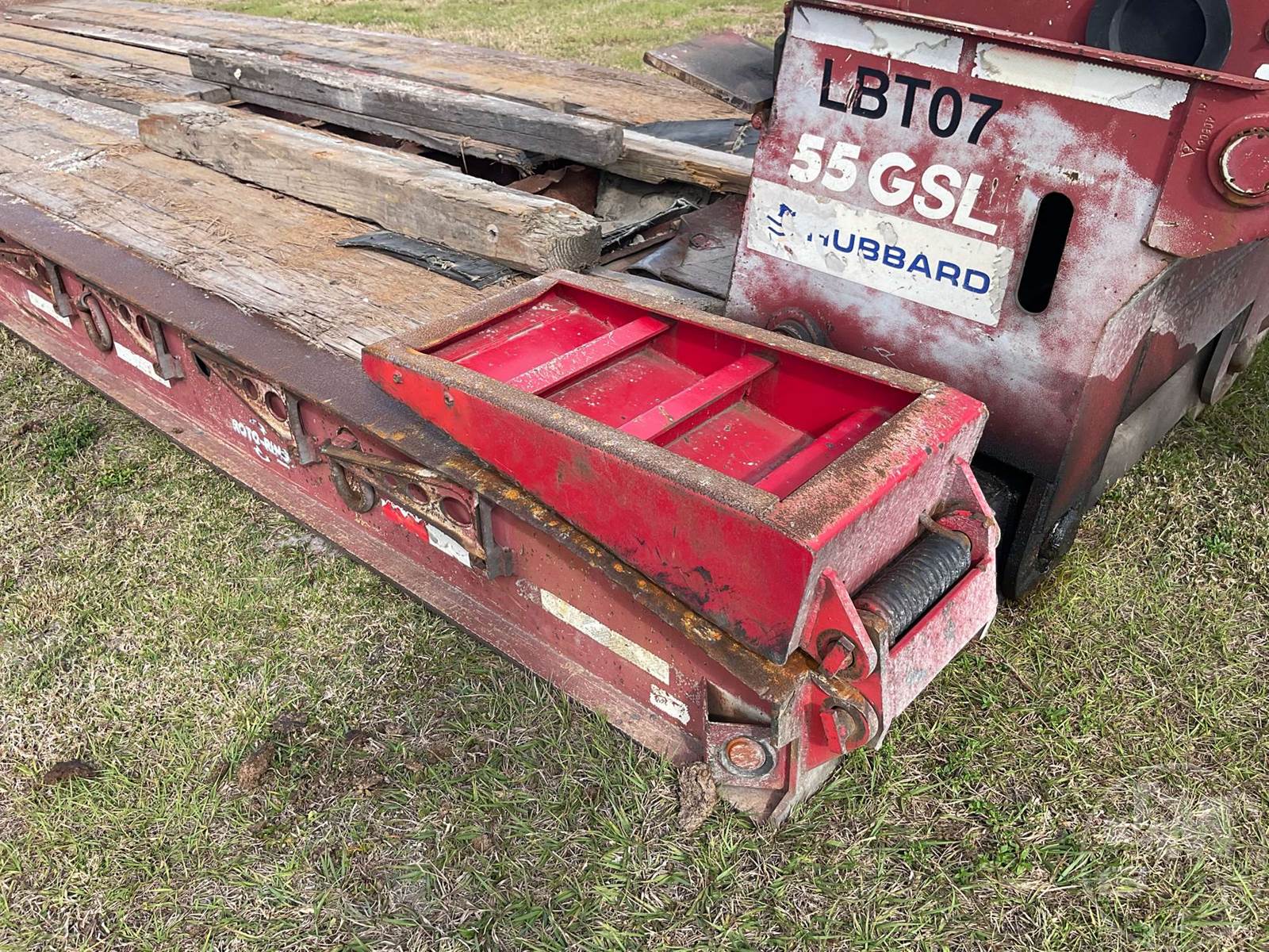 HYDRAULIC RGN LOWBOY TRAILER, 55 TON, 2+2+2 CONFIGURATION, GAS POWER PACK, DECK LENGTH 24', 8'6" WIDE, AIR RIDE SUSPENSION, WOOD DECKING, STEEL DISC WHEELS, 275/70R22.5