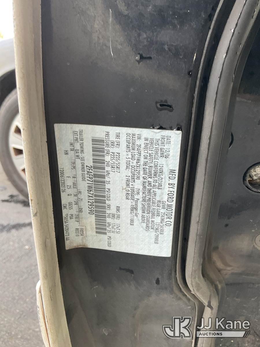 2007 Ford Crown Victoria Police Interceptor 4-Door Sedan, s/n 2FAFP71W67X129590, 8-cyl gas, RWD, 4-Speed Automatic, A/C, (103,060 miles) (Runs & Moves) (Missing Catalytic Converter, Engine Light On) (Bidding Restricted to Licensed Vehicle Dealers Only), This is a Titled Item NOTE: This unit is being sold AS IS/WHERE IS via Timed Auction and is located in Jurupa Valley, CA. Inspection & preview days for this unit are the 2 business days prior to the first day of items closing for this auction, item is located at 4510 Muth Way Jurupa Valley, CA 92509 and hours of operations are 8a-4p. For pre-sale questions, please contact please contact Office Staff @ (310) 353-7140. Dealer License Number 45696. (Buyer is responsible for removal. Assistance by consignor or JJ Kane Auctions is not assured.)