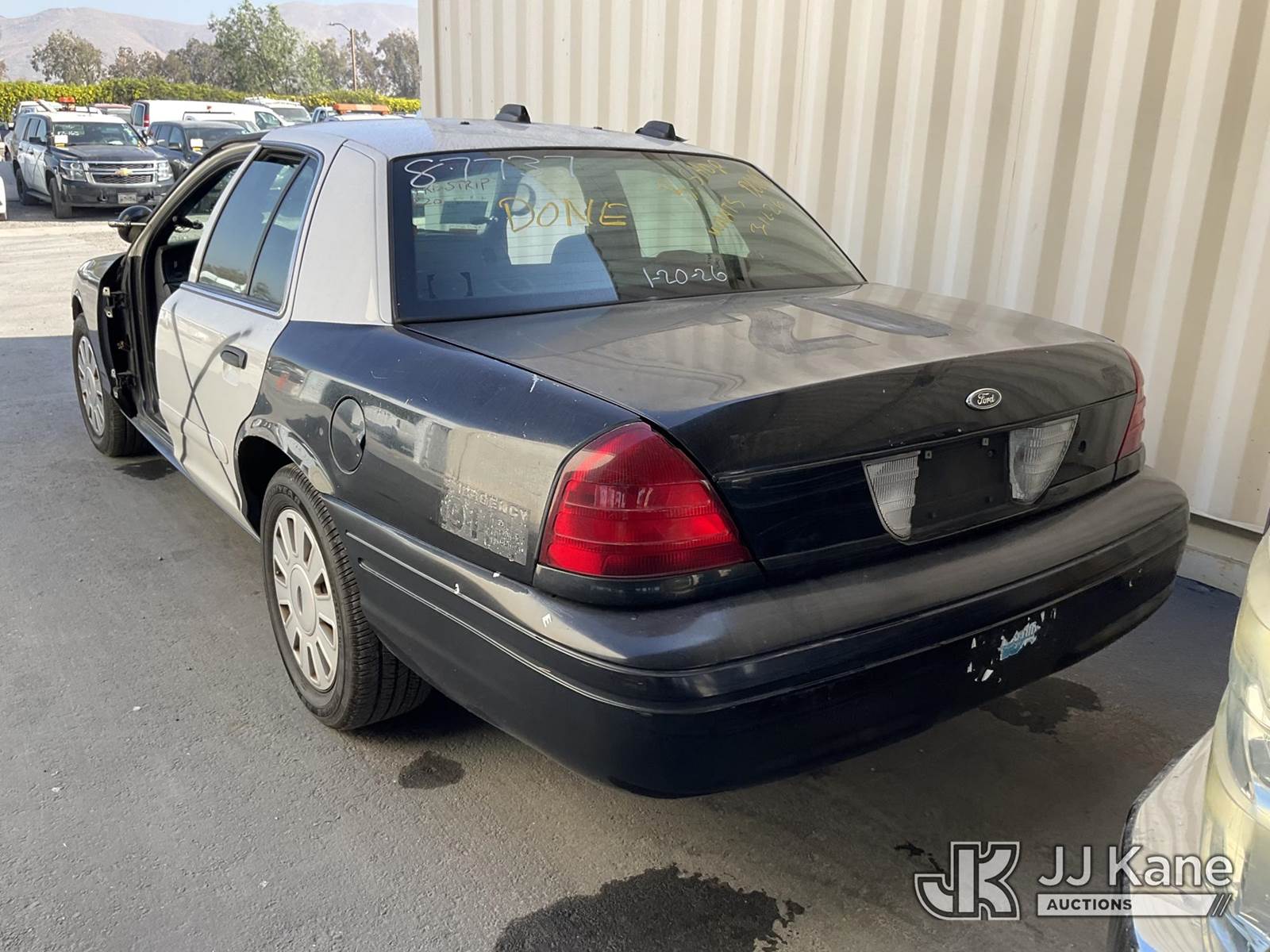 2007 Ford Crown Victoria Police Interceptor 4-Door Sedan, 8-cyl gas, 4-Speed Automatic, A/C, (122,705 miles) (Runs & Moves) (Missing Both Front Doors, Missing Stereo, Interior Stripped Of Parts) (Bidding Restricted to Licensed Vehicle Dealers Only), This is a Titled Item NOTE: This unit is being sold AS IS/WHERE IS via Timed Auction and is located in Jurupa Valley, CA. Inspection & preview days for this unit are the 2 business days prior to the first day of items closing for this auction, item is located at 4510 Muth Way Jurupa Valley, CA 92509 and hours of operations are 8a-4p. For pre-sale questions, please contact please contact Office Staff @ (310) 353-7140. Dealer License Number 45696. (Buyer is responsible for removal. Assistance by consignor or JJ Kane Auctions is not assured.)