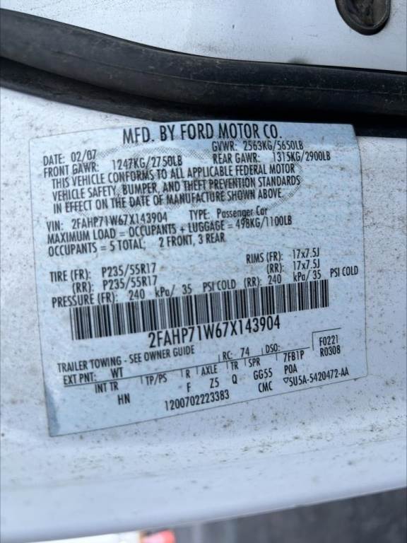 Location: Spokane WA ***City Government Surplus*** VIN: 2FAHP71W67X143904 Engine: 4.6L 8cyl Gas Transmission: Automatic *Body damage*, Push bumper, spotlights, power windows, power mirrors, power locks, adjustable pedals, power driver seat, A/C, AM/FM, P235/55R17 tires. Miles: 123,452