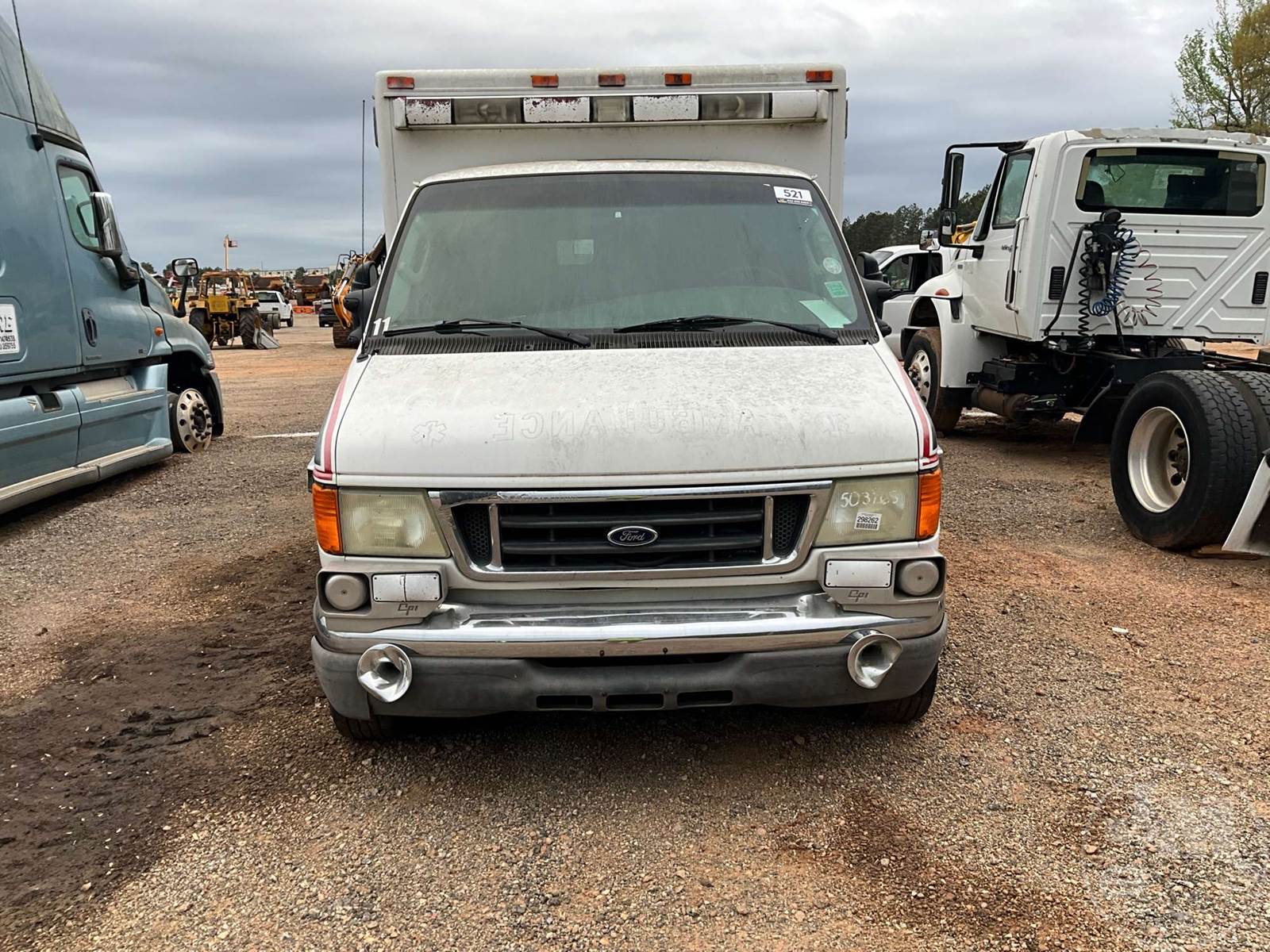 S/A AMBULANCE, FORD, 6.0 POWERSTROKE, AUTOMATIC, AWD, SPRING RIDE SUSP, 138" WB, C/A: 80, SINGLE FRAME, CRUISE CONTROL, DISC WHEELS, TIRES 245/75R16, HOUR METER READS: CNV, ODOMETER READS: CNV, ***INOP***