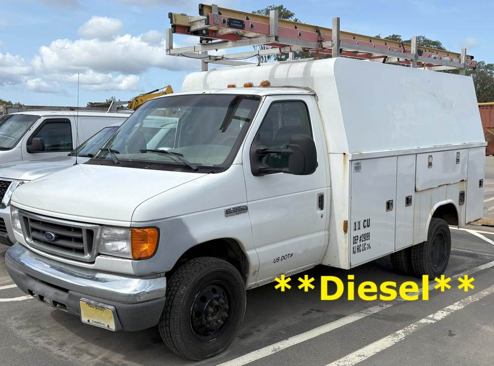 2007 FORD E-350 SD Service Utility Van, 144,594 miles, EFI Navistar 8-cylinder diesel engine, automatic transmission, ladder rack, Tool boxes, cutaway cube van, light duty service utility van, financing available