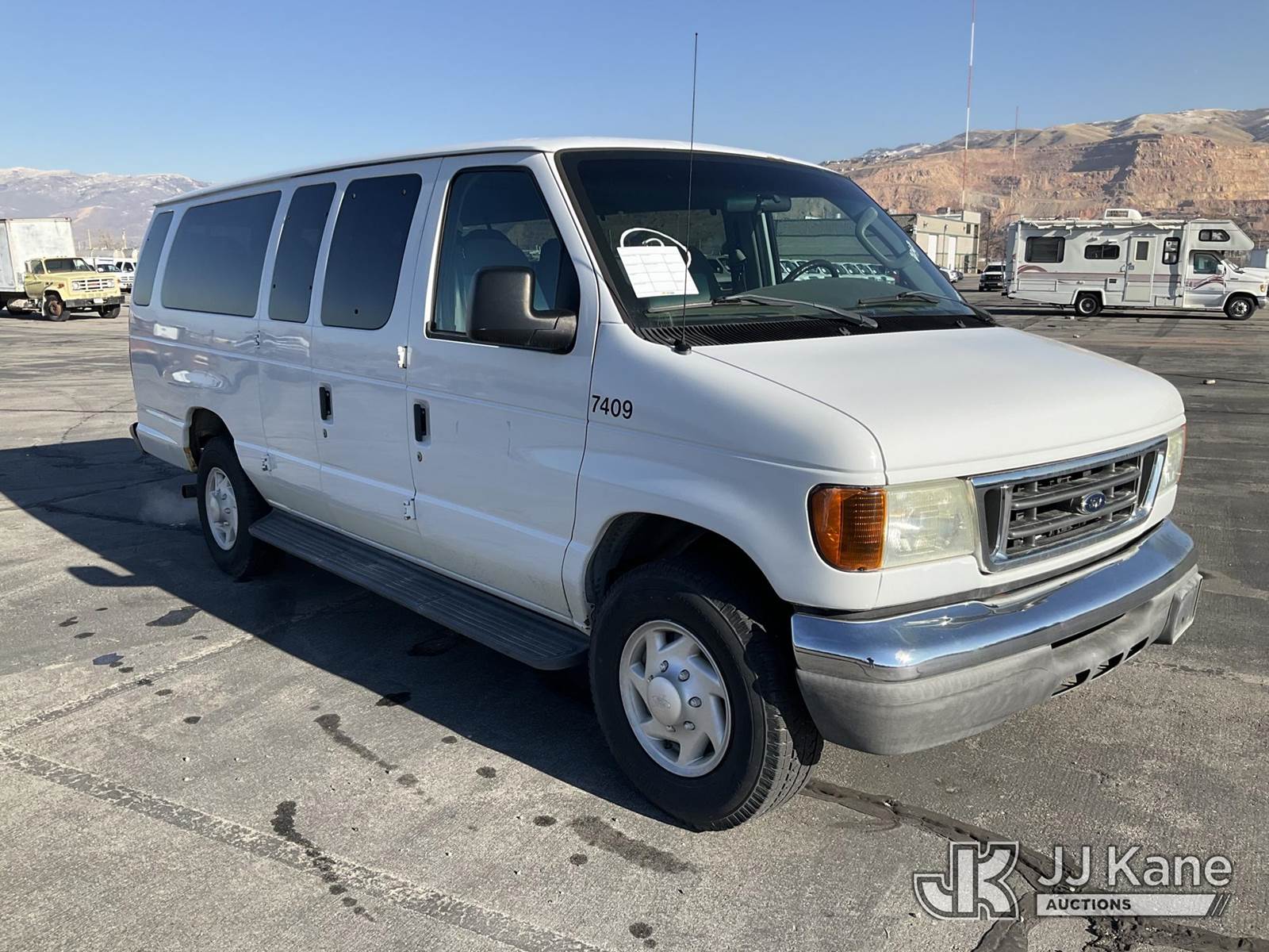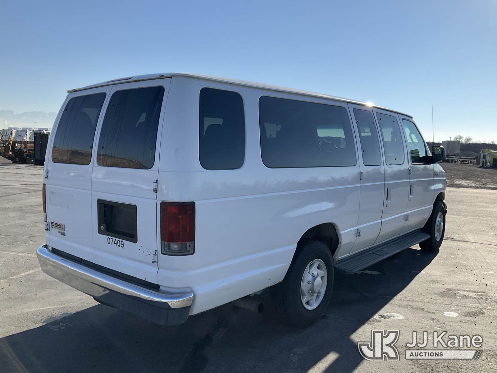 2007 Ford E350 Passenger Van, 8-cyl gas, Auto, A/C, (155,845 miles) (Runs & Moves) (Bad Battery) This is a Titled Item NOTE: This unit is being sold AS IS/WHERE IS via Timed Auction and is located in Salt Lake City, UT. Inspection & preview days for this unit are the 2 business days prior to the first day of items closing for this auction, item is located at 2353 N Redwood Rd Salt Lake City, UT 84116 and hours of operations are 8a-4p. Titles executed exactly as bidder registered. Ensure your name and/or business name and address in JJ Kane and/or ProxiBid is correct before bidding. For pre-sale questions, please contact Office Staff @ (801) 519-0123. (Buyer is responsible for removal. Assistance by consignor or JJ Kane Auctions is not assured.)