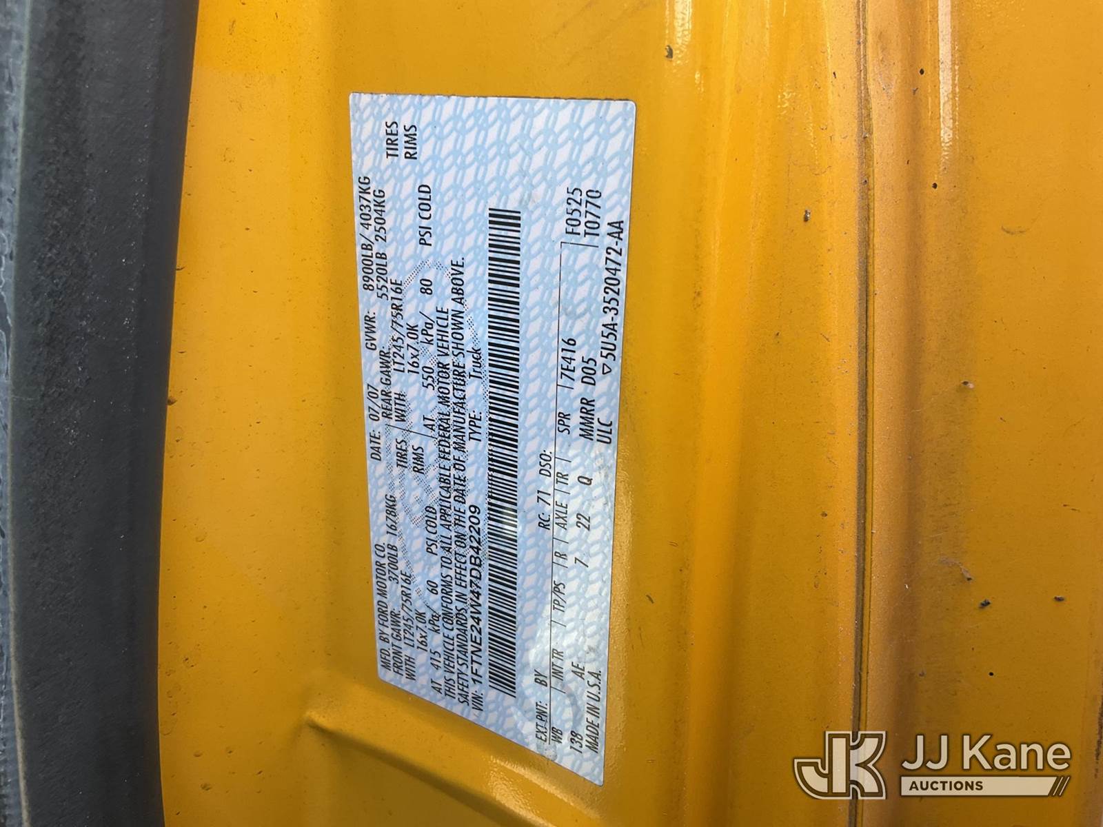 2007 Ford Econoline E-250 Cargo Van, s/n 1FTNE24W47DB42209, 4.6L V8 SOHC 16V RWD, GAS, 4-Speed Automatic, A/C, True Mileage Unknown (Not Running, Missing Battery, Wires Cut, Must Be Towed) (Bidding Restricted to Licensed Vehicle Dealers Only), This is a Titled Item NOTE: This unit is being sold AS IS/WHERE IS via Timed Auction and is located in Jurupa Valley, CA. Inspection & preview days for this unit are the 2 business days prior to the first day of items closing for this auction, item is located at 4510 Muth Way Jurupa Valley, CA 92509 and hours of operations are 8a-4p. For pre-sale questions, please contact please contact Office Staff @ (310) 353-7140. Dealer License Number 45696. (Buyer is responsible for removal. Assistance by consignor or JJ Kane Auctions is not assured.)