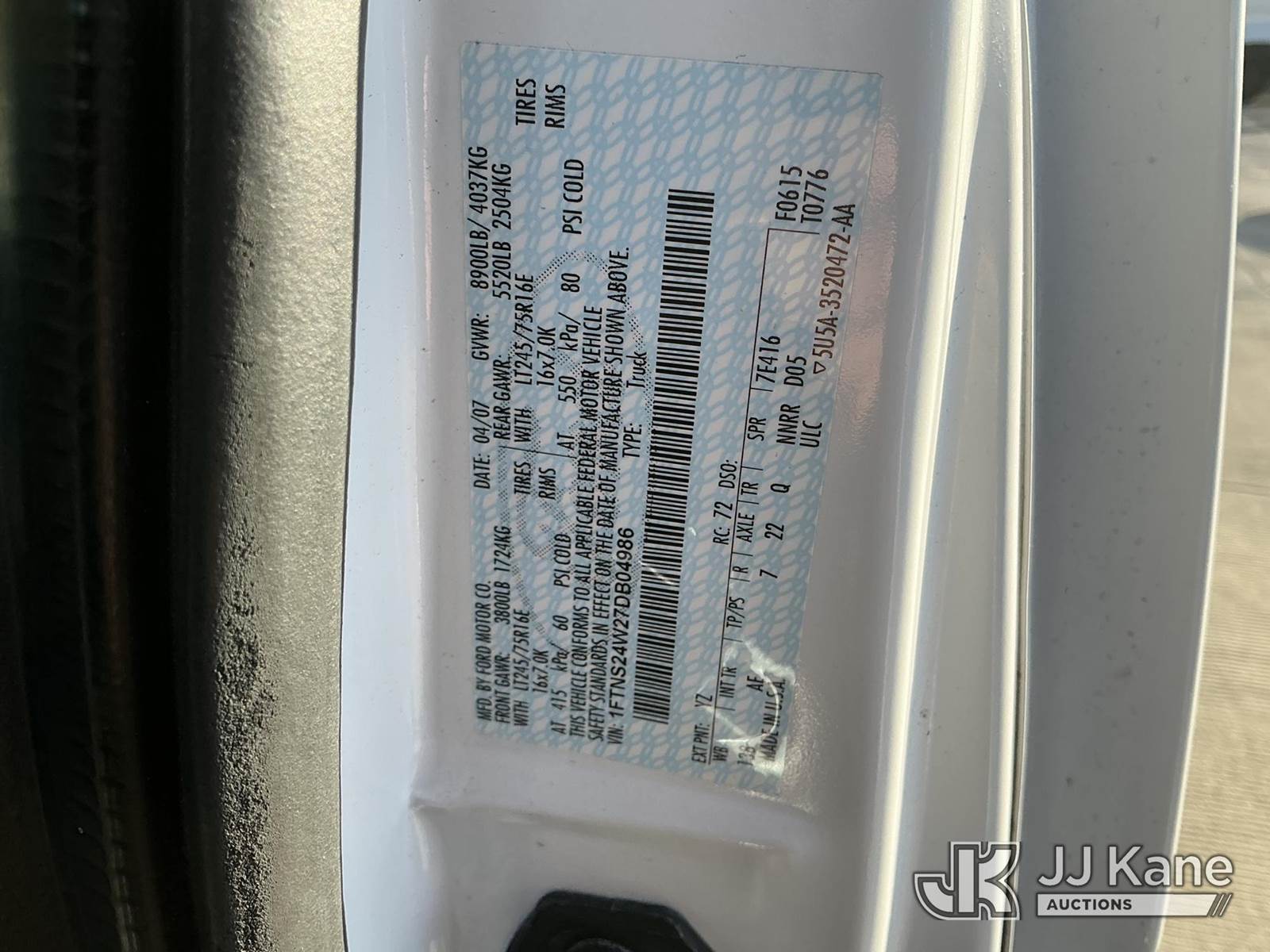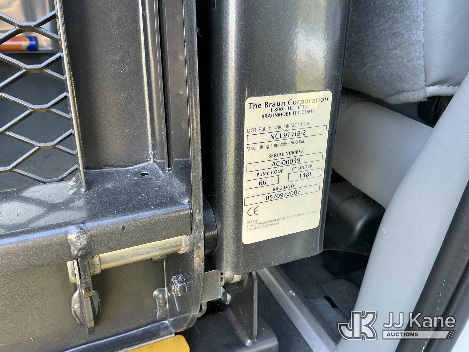 2007 Ford Econoline E-250 Extended Extended Passenger Van, s/n 1FTNS24W27DB04986, 4.6L V8 SOHC 16V RWD, GAS, 4-Speed Automatic, A/C, (17,078 miles) (Runs & Moves)(Wheelchair Lift Does Not Operate ) This is a Titled Item NOTE: This unit is being sold AS IS/WHERE IS via Timed Auction and is located in Dixon, CA. Inspection & preview days for this unit are the 2 business days prior to the first day of items closing for this auction, item is located at 8668 Sparling Ln Dixon, CA 95620 and hours of operations are 8a-4p. For pre-sale questions, please contact JJ Kane Staff at (707) 678-8060 (dixon@jjkane.com). Dealer License Number 45696. (Buyer is responsible for removal. Assistance by consignor or JJ Kane Auctions is not assured.)