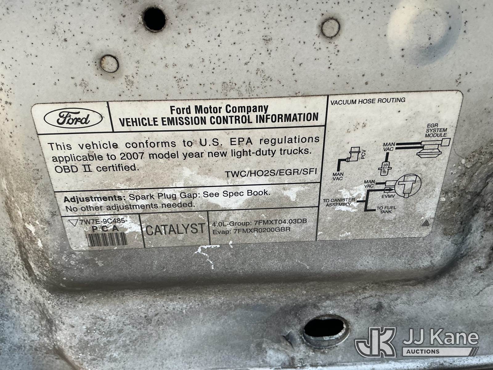 2007 Ford Explorer 4-Door Sport Utility Vehicle, 6-cyl gas, Auto, A/C, (61,775 miles) City of St Petersburg Unit (Runs & Moves) (Check Engine Light On, Maintenance Light On, Paint Damage)(exempt from odometer disclosure) (FL Residents Purchasing Titled Items - tax, title & registration fees will be collected at the maximum rate of $400.00 under 25,999 and $800.00 for Over 26,000 and $250.00 trailers - Proof of insurance is mandatory; Out of State Residents Purchasing Title Items - tax will be collected based upon your state rate.) This is a Titled Item NOTE: This unit is being sold AS IS/WHERE IS via Timed Auction and is located in Thonotosassa, FL. Inspection & preview days for this unit are the 2 business days prior to the first day of items closing for this auction, item is located at 11720 N US 301 Thonotosassa, Fl 33592 and hours of operations are 8a-4p. For pre-sale questions, please contact Office Staff @ (813) 986-2485. (Buyer is responsible for removal. Assistance by consignor or JJ Kane Auctioneers is not assured.)