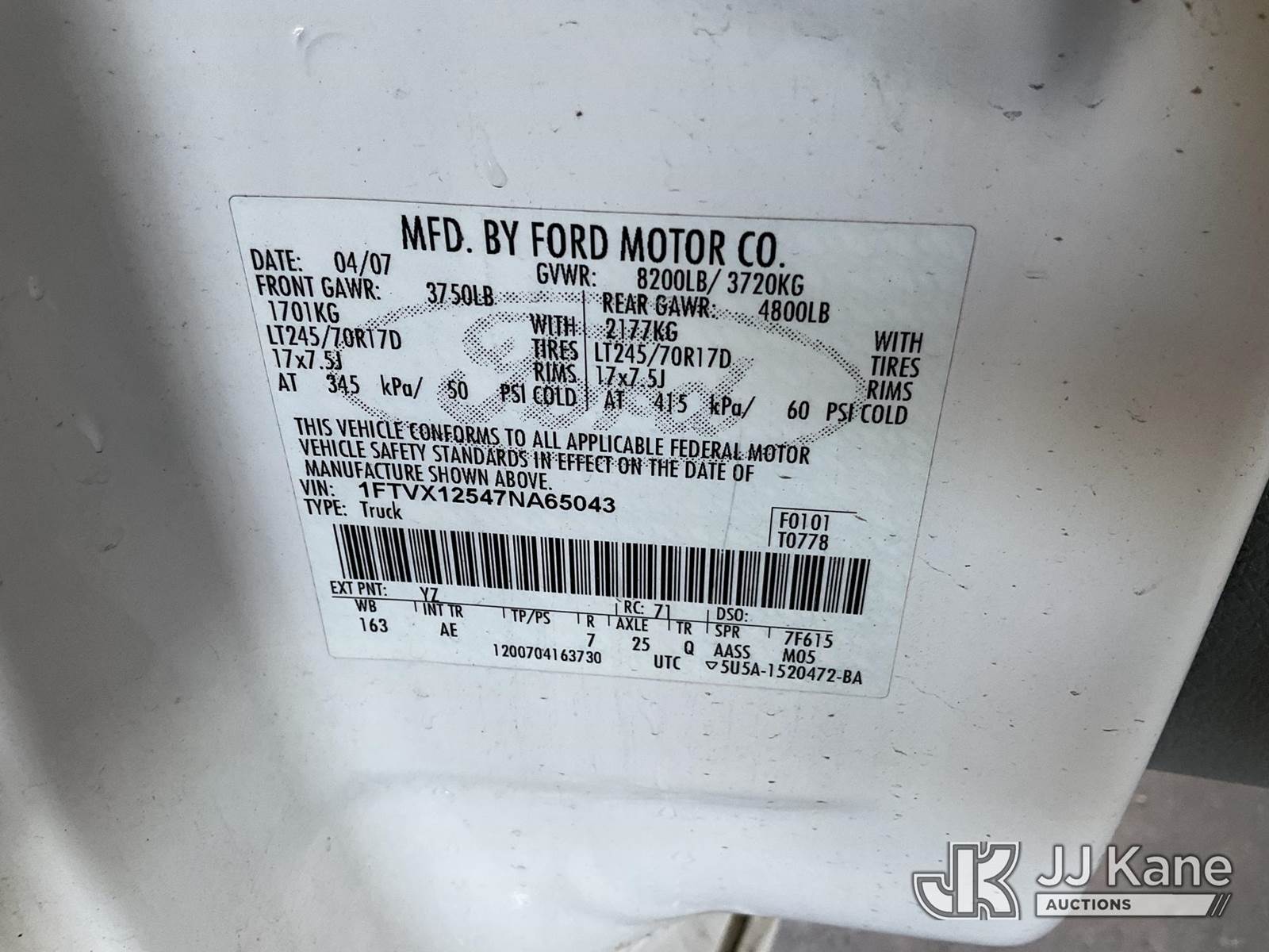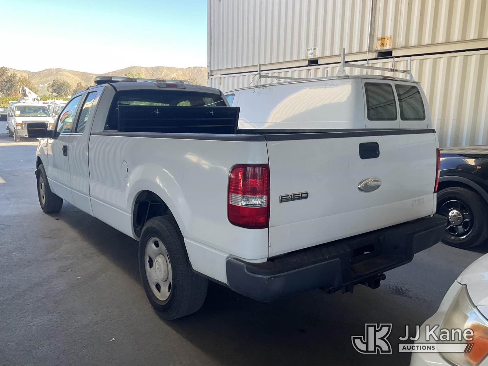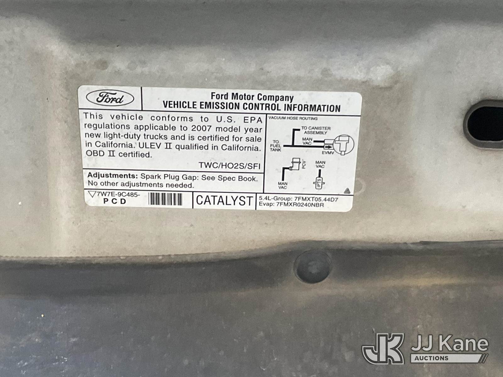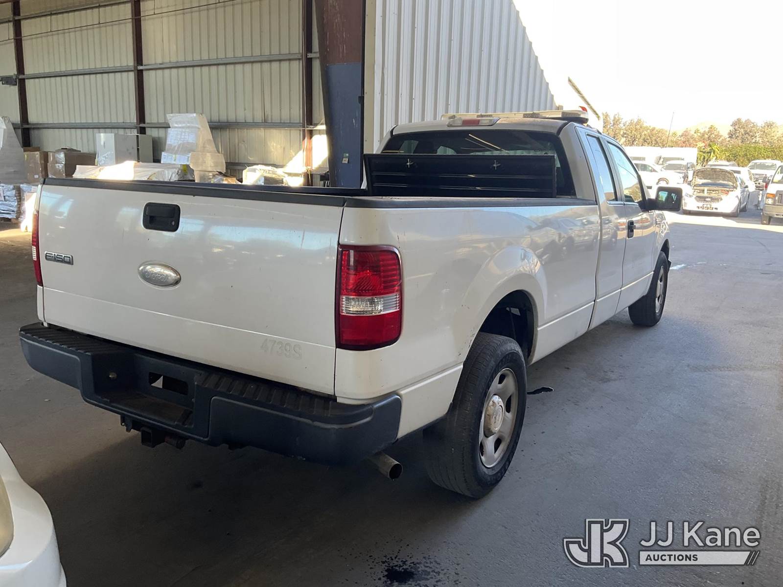 2007 Ford F-150 Extended-Cab Pickup Truck, s/n 1FTVX12547NA65043, 6-cyl gas, 4-Speed Automatic, A/C, with Tow package, toolbox, (58,374 miles) (Runs & Moves) This is a Titled Item NOTE: This unit is being sold AS IS/WHERE IS via Timed Auction and is located in Jurupa Valley, CA. Inspection & preview days for this unit are the 2 business days prior to the first day of items closing for this auction, item is located at 4510 Muth Way Jurupa Valley, CA 92509 and hours of operations are 8a-4p. For pre-sale questions, please contact please contact Office Staff @ (310) 353-7140. Dealer License Number 45696. (Buyer is responsible for removal. Assistance by consignor or JJ Kane Auctions is not assured.)