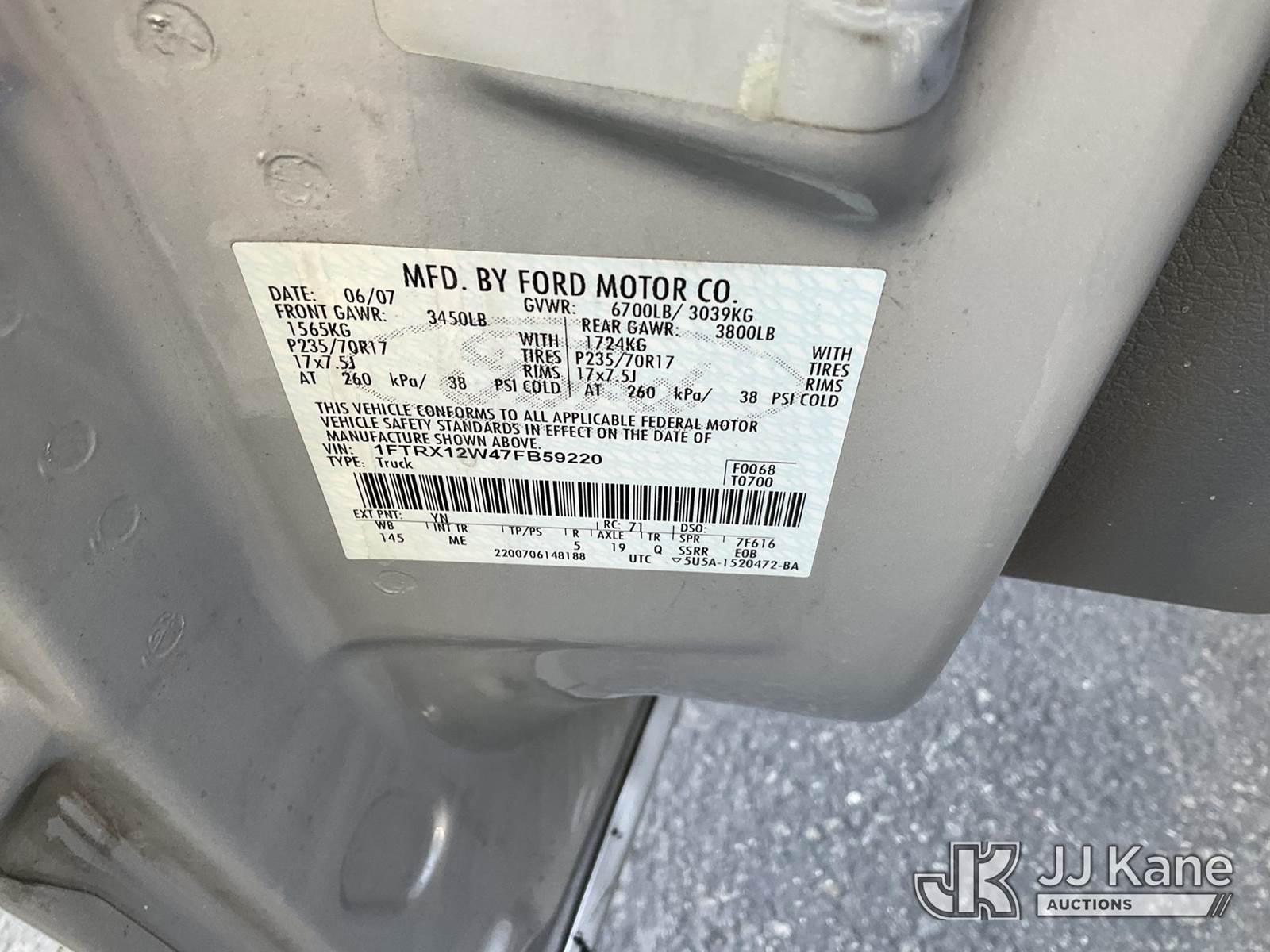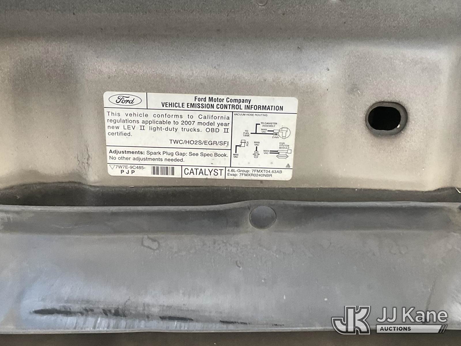 2007 Ford F-150 Extended-Cab Pickup Truck, 4.6L V8 SOHC 16V Gas, RWD, 4-Speed Automatic, A/C, (142,778 miles) (Runs & Moves) (Needs Battery, Missing Catalytic Converter) (Vehicle previously used with a ‘cold plate’ or protected record registration. Due to the prior status, VIN may not yet appear in NMVTIS, which could affect DMV title/registration processing. Buyer acknowledges and accepts this) (Bidding Restricted to Licensed Vehicle Dealers Only), This is a Titled Item NOTE: This unit is being sold AS IS/WHERE IS via Timed Auction and is located in Jurupa Valley, CA. Inspection & preview days for this unit are the 2 business days prior to the first day of items closing for this auction, item is located at 4510 Muth Way Jurupa Valley, CA 92509 and hours of operations are 8a-4p. For pre-sale questions, please contact please contact Office Staff @ (310) 353-7140. Dealer License Number 45696. (Buyer is responsible for removal. Assistance by consignor or JJ Kane Auctions is not assured.)