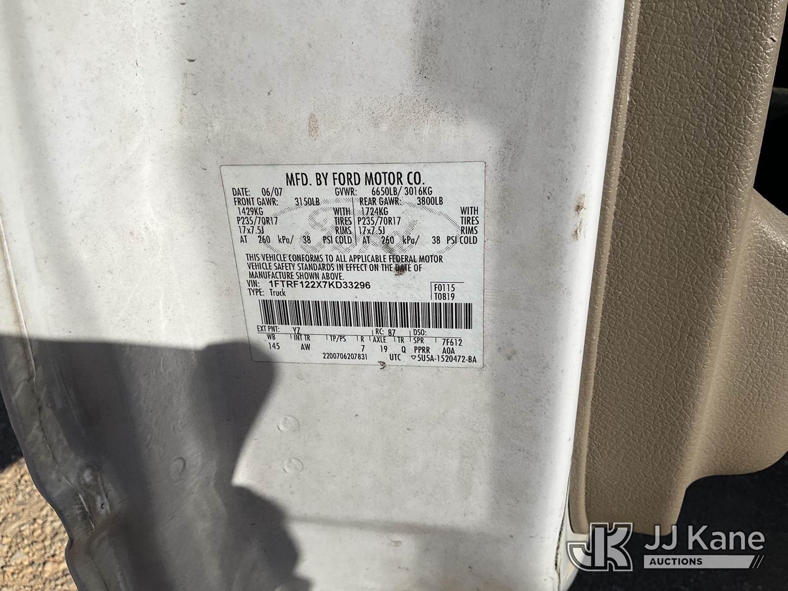 2007 Ford F-150 Pickup Truck, 6-cyl gas, Auto, RWD, A/C, (148,476 miles) (Runs & Moves)(Check Engine Light On) This is a Titled Item NOTE: This unit is being sold AS IS/WHERE IS via Timed Auction and is located in Marion, TX. Inspection & preview days for this unit are the 2 business days prior to the first day of items closing for this auction, item is located at 3292 S Santa Clara Rd Marion, TX 78124 and hours of operations are 8a-4p. For pre-sale questions, please contact Brian Jarrell @ 210-540-3147. (Buyer is responsible for removal. Assistance by consignor or JJ Kane Auctions is not assured.)