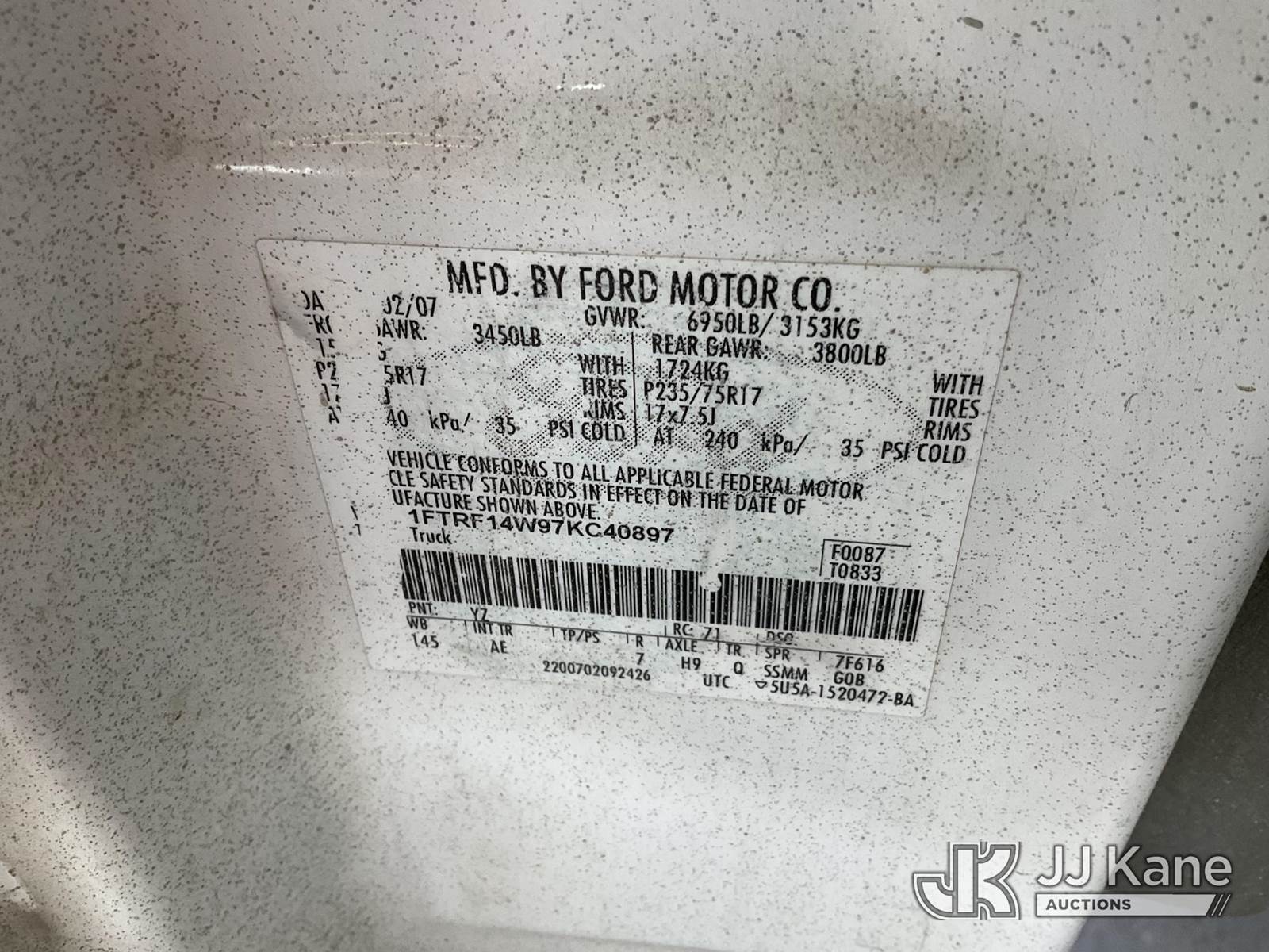 2007 Ford F-150 Pickup Truck, 8-cyl gas, 4WD, 4-Speed Automatic, A/C, (115,233 miles) (Runs & Moves) (Engine Light On, Per Seller Oil Pressure Issue) (Bidding Restricted to Licensed Vehicle Dealers Only), This is a Titled Item NOTE: This unit is being sold AS IS/WHERE IS via Timed Auction and is located in Jurupa Valley, CA. Inspection & preview days for this unit are the 2 business days prior to the first day of items closing for this auction, item is located at 4510 Muth Way Jurupa Valley, CA 92509 and hours of operations are 8a-4p. For pre-sale questions, please contact please contact Office Staff @ (310) 353-7140. Dealer License Number 45696. (Buyer is responsible for removal. Assistance by consignor or JJ Kane Auctions is not assured.)