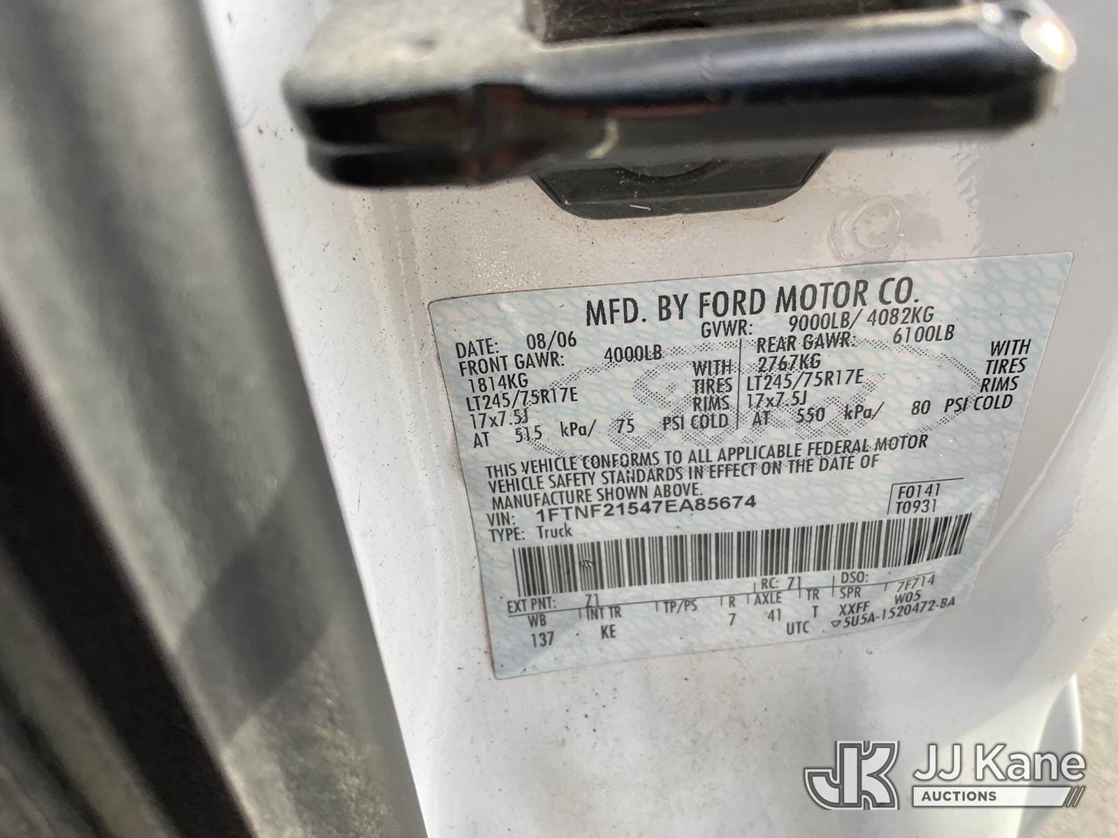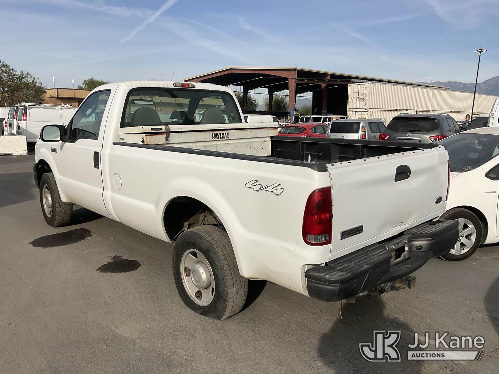 2007 Ford F-250 SD Pickup Truck, s/n 1FTNF21547EA85674, 5.4L V8 SOHC 16V Gas Auto, 4WD, A/C, with Tow Package, Toolbox, (106,129 miles (unverified)) (Runs & Moves) (Tires Unsafe) (Bidding Restricted to Licensed Vehicle Dealers Only), This is a Titled Item NOTE: This unit is being sold AS IS/WHERE IS via Timed Auction and is located in Jurupa Valley, CA. Inspection & preview days for this unit are the 2 business days prior to the first day of items closing for this auction, item is located at 4510 Muth Way Jurupa Valley, CA 92509 and hours of operations are 8a-4p. For pre-sale questions, please contact please contact Office Staff @ (310) 353-7140. Dealer License Number 45696. (Buyer is responsible for removal. Assistance by consignor or JJ Kane Auctions is not assured.)