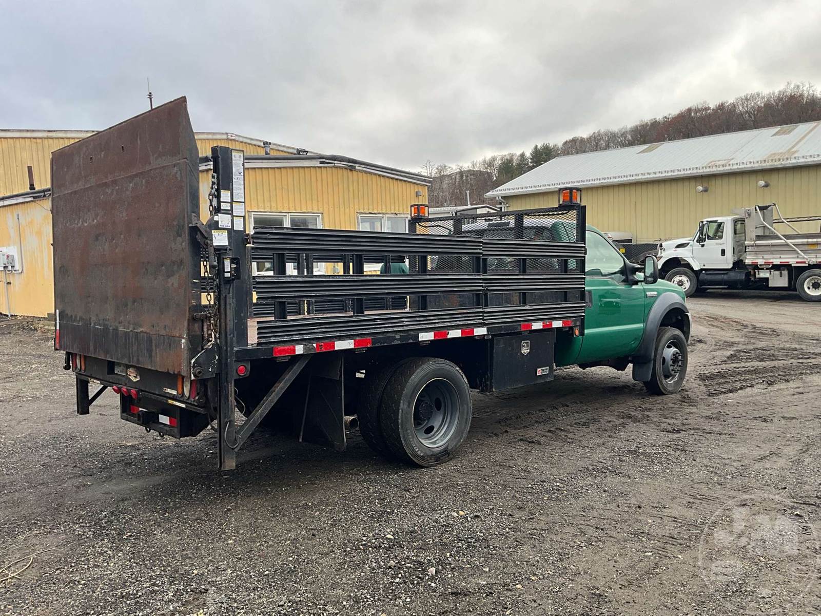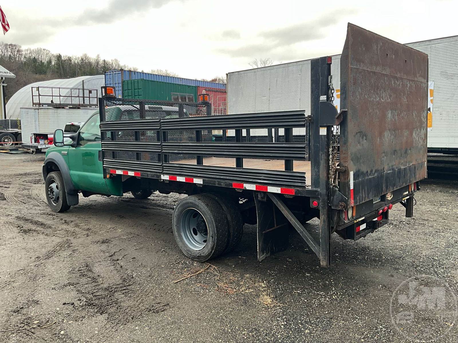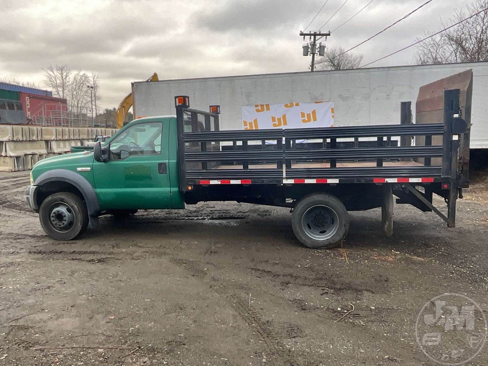 SINGLE AXLE REGULAR CAB STAKE BED TRUCK, 12' , STEEL BED, INTERNATIONAL, POWER STROKE, 330 HP, AUTOMATIC, SPRING SUSPENSION, 10K FRONTS, 17K REARS, STEEL DISC WHEELS, 225/70R19.5 TIRES, HYD LIFT GATE