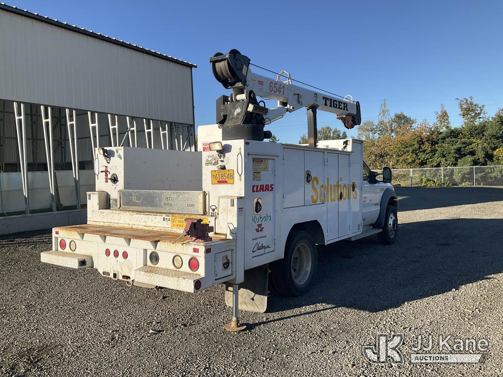 2007 Ford F-550 Regular Cab 2WD DRW Mechanics Service Truck, 6.0L V8 OHV 32V TURBO DIESEL 5-spd, RWD, A/C, with Tiger 6541 Crane & Miller 250 Welder, (202,655 miles) (Runs & Moves)( Passenger Side Outrigger Will not go Up, Unit Leaking Hydraulic Fluid, Could Not Get Ariel to Operate. Buyer Responsible For Loadout) This is a Titled Item NOTE: This unit is being sold AS IS/WHERE IS via Timed Auction and is located in Salem, OR. For more information & removal arrangements please contact Mat Smith @ 844-455-5263 (Buyer is responsible for removal. Assistance by consignor or JJ Kane Auctioneers is not assured.)