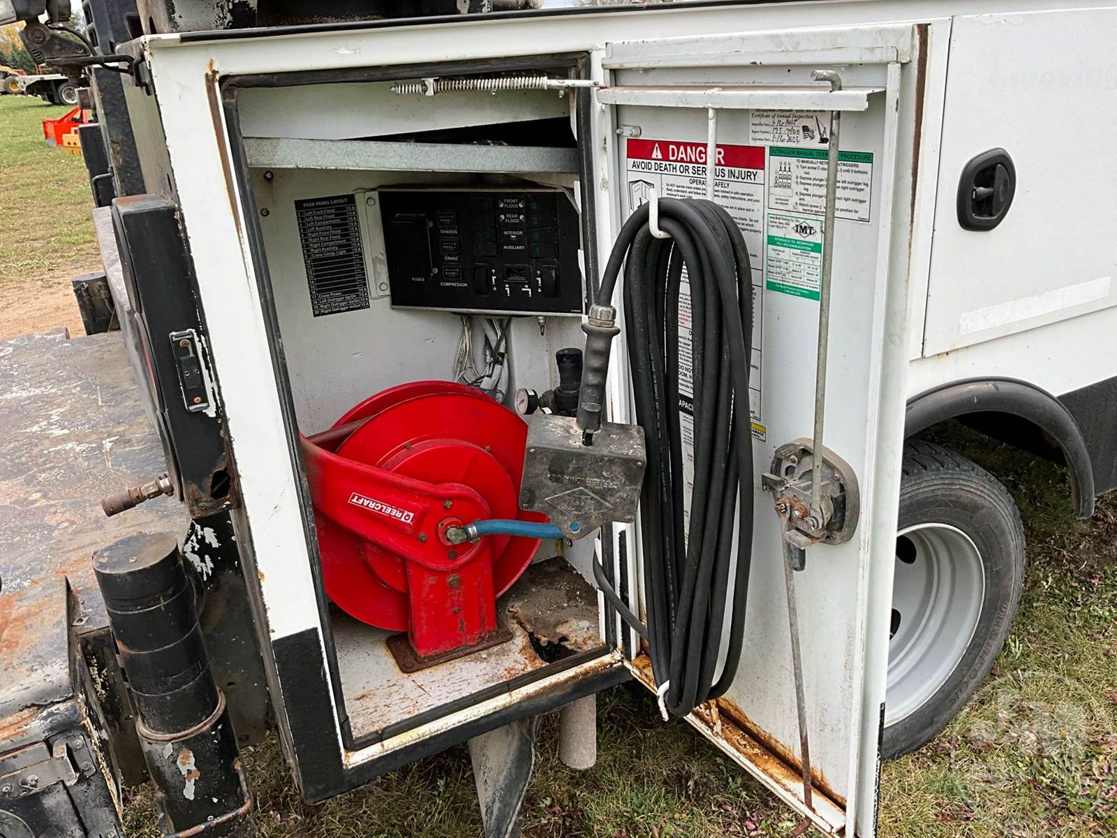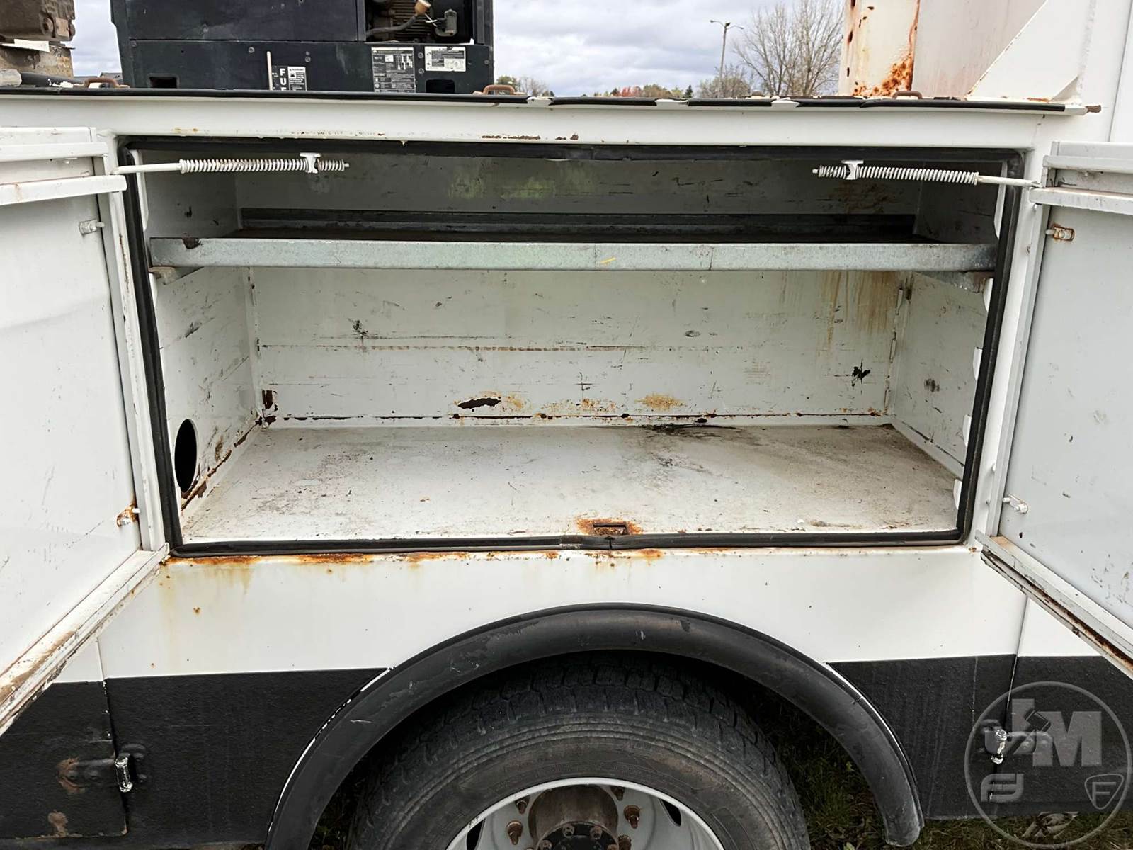 S/A MECHANICS TRUCK, 6.8L V10 GAS, AUTOMATIC, 141 " WB, GVWR 17950, IMT, 11' UTILITY BODY, IMT, DOMINATOR 3820, CRANE REACH 20 FEET, HYDRAULIC OUTRIGGERS, CORDED REMOTE, HYDRAULIC AIR COMPRESSOR, HOSE REEL, CRUISE CONTROL, VISE, STEEL DISC WHEELS, 225/70R19.5 TIRES, LIFTING CAPACITY 7500LBS, MILLER BOBCAT 225 WELDER/GENERATOR, ODOMETER READS: 114918