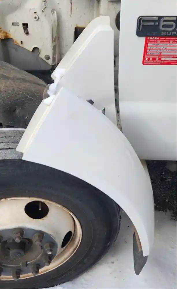(Used) 2007 Ford F-650, FENDER EXTENSION- Side: Driver Left Side, Color: White, Material: Fiberglass, Reference images for condition, For more information about this item, give us a call. We ship Worldwide! (CRG HEAVY TRUCK PARTS) 929 W PULASKI HWY ELKTON, MD 21921