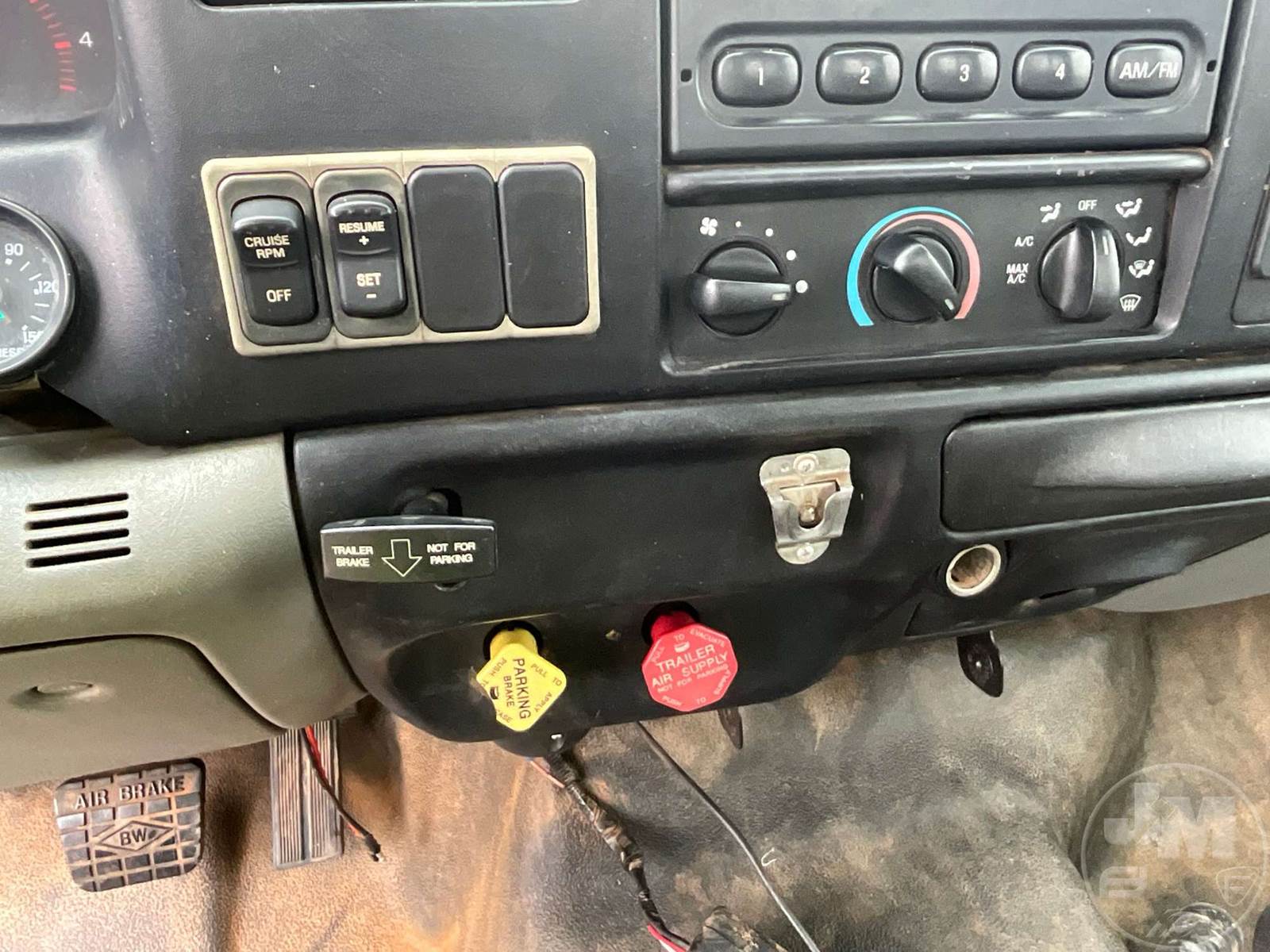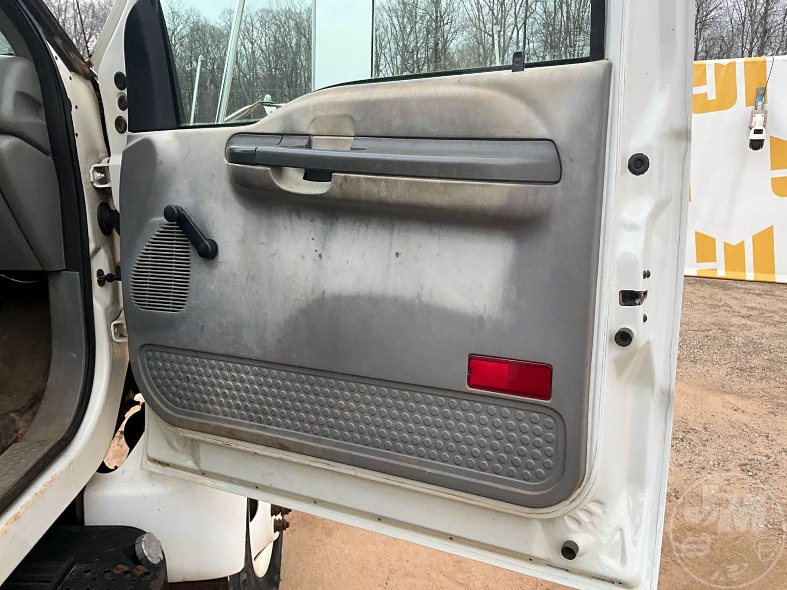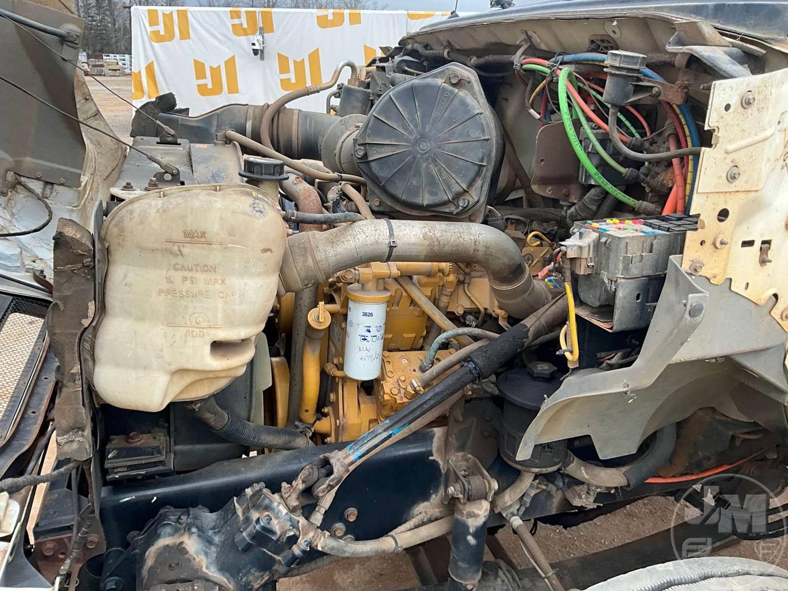 SINGLE AXLE REGULAR CAB FLATBED TRUCK, 14', STEEL BED, CATERPILLAR, C7, 7 SPEED, SPRING SUSPENSION, HEADACHE RACK, CRUISE CONTROL, REAR HITCH, 182 " WB, 12K FRONTS, 21K REARS, 33K GVWR, STEEL DISC WHEELS, 11R22.5 TIRES, REAR AIR HOOKUPS, SIDE BOXES, ODOMETER READS: 69105